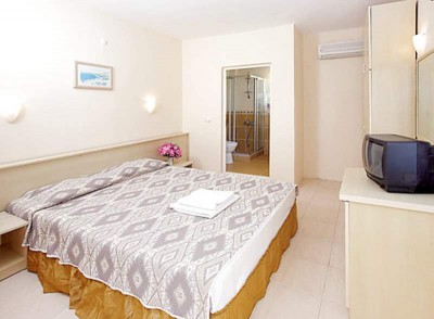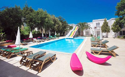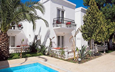 В 30 км от аэропорта Милас, в 5 км от Бодрума, в поселке Торба, в 400 м от собственного пляжа.