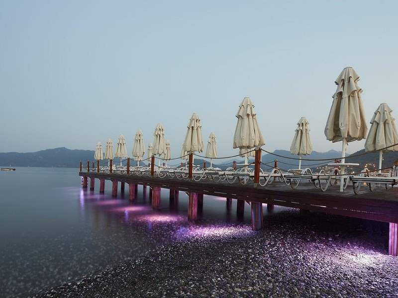 В 90 км от аэропорта г. Даламан, в 120 км от аэропорта Бодрума, в 3 км от г. Мармарис, в 50 м от берега моря, через дорогу.