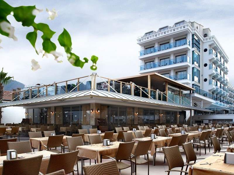 Отель состоит из одного 4-этажного здания. Гости пользуются территорией, рестораном и пляжем отеля Emre Beach 4*. Всего 170 номеров.