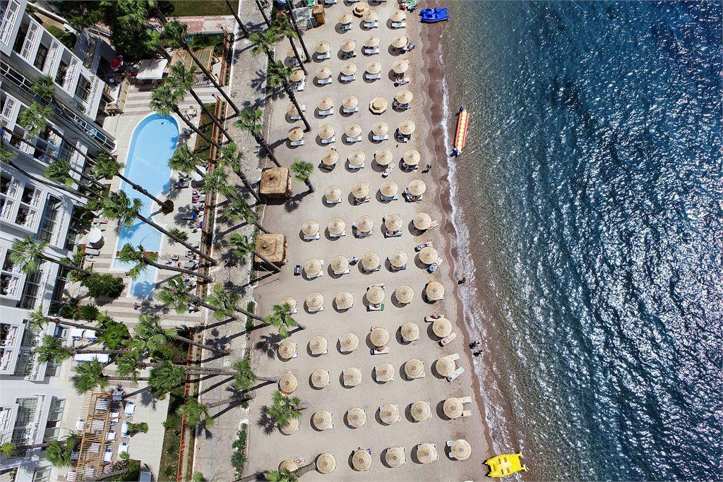 Тихий, без детей, "камерный", собственный оборудованный пляж, полная противоположность типичному турецкому отдыху.