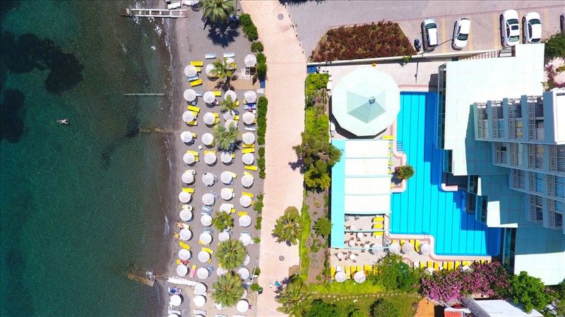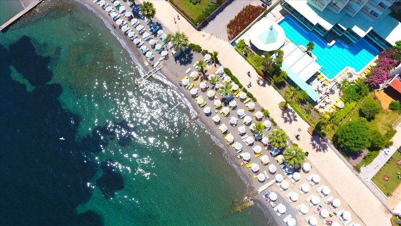 Недавно вернулись из отеля, отдыхали с 4.09-11.09. До поездки читали отзывы других туристов, и были приятно удивлены, что все совпало. Самый главный плюс отеля-то, что он расположен прямо у моря, 1 линия, до моря меньше минуты ходьбы от бара. Поэтому не было ни малейшего желания поплавать в бассейне. ведь море чистое, теплое, комфортное, без волн, и совсем близко. Само здание отеля построено так, что из каждого номера есть вид на море, у нас был 323, он расположен немного в глубине , поэтому даже днем не было жарко, а вид прекрасный на бухту с корабликами. Этот отель для тех, кто знает, чего хочет от отдыха, да, он не статусный, негромкий, зато очень уютный и доброжелательный. Особо хочется отметить команду сотрудников ресторана, как поваров, так и официантов. Сразу видно, что это команда, меня поражало, с какой доброжелательностью , юмором и постоянной улыбкой они работают практически по 14 часов. И это уже почти конец сезона, и жара. Большое спасибо всем ребятам и девочкам из ресторана, Алику за его юмор и вкусный омлет и оладушки, Мехмету за чистую территорию, Мурату за его желание помочь в любом вопросе, и еще не успела узнать имя чудесной девочки на мотороллере, с ее тактом и любезностью. По поводу еды : да, блюд не так много, но они вкусно, по-домашнему, приготовлены, да и мы не голодные))). Было все, что я люблю : оливки нескольких видов, сыры, овощи тушеные, запеченные, вкусные гарниры и мясные и рыбные блюда. Фруктов достаточно : апельсины, яблоки, сливы, виноград, арбузы и дыни. Сладкий стол тоже был вполне-пирожные, торты, турецкие печеньки и т.п., я это почти не ем. Всегда можно выбрать что-то сладкоежкам. Столы и посуда были чистыми, салфетки менялись после каждого гостя. А сам ресторан на открытой террасе, обдуваемой морским бризом, и с прекрасным видом на море. Номер довольно большой, уютный, все функционально, исправно, чисто и эстетично. Все работало. Уборка ежедневно, с мытьем пола даже на балконе. Полотенца менялись по мере загрязнения, есть шампунь и мыло. Кондиционер работал, спали с ним, т.к. ночи были теплые, и рядом дорога (это только на нашей стороне, немного шумно). Особо о баре: напитки приличные, конечно, местного производства. Но вино вполне можно пить, красное мне показалось вкуснее. пробовали разные коктейли, виски, бренди, джин, раки. Наливают полстакана))), в конце я уже просила шот. Пиво стандартное, холодное, хорошо утоляет жажду. Детей нет, атмосфера спокойная, как раз то, что нужно для отдыха. Много турецких семей , очень приятные и воспитанные люди. В-общем, ставлю за отдых в этом отеле честную "пятерку". Да, кстати, еще нюанс. По приезде мы опоздали на ужин, но нам в номер принесли по тарелке еды, приятная забота. И , когда уезжали, обед уже не входил в обслуживание, но нас любезно покормили в ресторане, поэтому мы отправились домой сытые и довольные. Благодарю всех , кто сделал наш отдых беззаботным и приятным и желаю отелю процветания, благодарных и порядочных туристов. Немного хотелось бы поменять музыку в баре, пусть бы это были мировые хиты или легкий джаз, тогда атмосфера была бы еще приятнее.