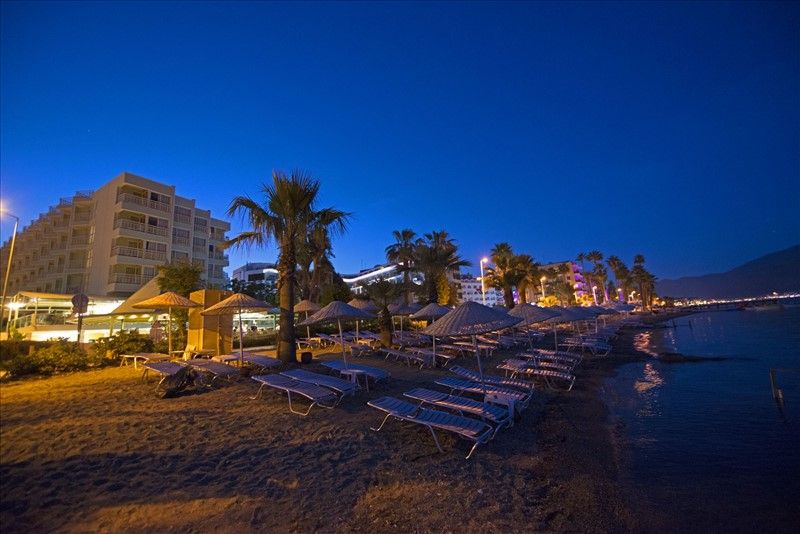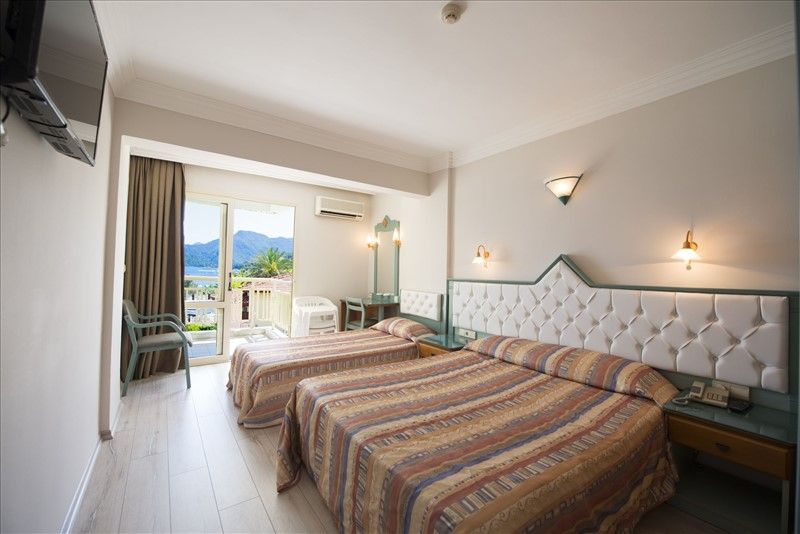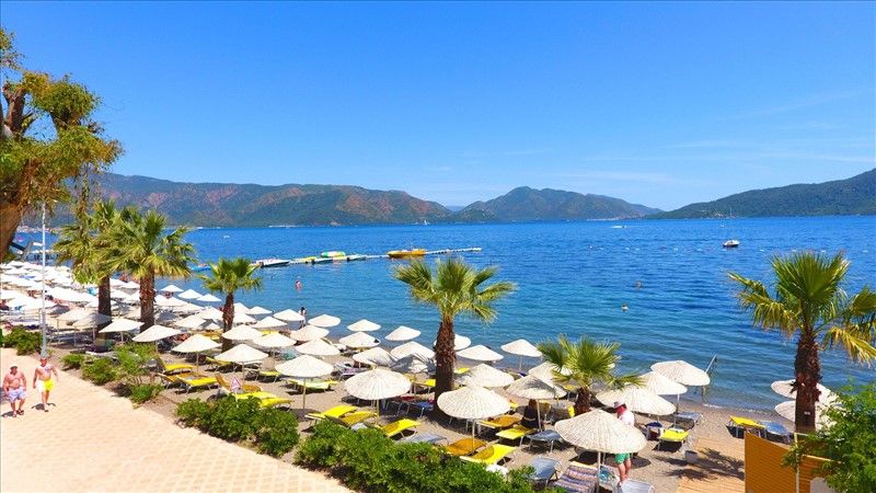 Отдыхали в конце октября. С погодой повезло, ни одного облачного дня. Днем даже приходилось пережидать жару в номере с кондиционером. Море отличное, вода не теплая, как летом, но и не холодная. Купались каждый день по несколько раз. Лежаков всем хватало. Пляж чистый, расположен в красивой бухте, со всех сторон горы!!! Вдали видна марина с яхтами, круизными лайнерами и проч. Отель городской, небольшой, что важно - на первой береговой линии. Без анимации. Тихий и спокойный. Уборка хорошая, каждый день. Персонал приветливый. Видно, что все устали к концу сезона, но стараются. Кухня радовала каждый день. По утрам помимо стандартного набора блюд можно заказать омлет с любым наполнителем (на выбор), тут же пекут оладья. На обед и ужин всегда несколько (не менее 3-5) вариантов салатов, мяса/рыбы, гарниров. Отдельно стол со сладостями и фруктами ( мы застали апельсины, груши, сливы, арбузы). Кухня скорее домашняя. Мы никогда не были голодными. Кому нужен огромный выбор блюд, то это не сюда. От отеля вдоль набережной можно гулять часами, как в сторону района Ичмелер ( тишина, сосны, отели в горах), так и в центр Мармариса (отели, бары, пляжи, дискотеки, аквапарк, рынок). Можно также недорого доехать на маршрутке ( останавливается прямо у главного входа в отель) до центра и обратно. Что удобно, можно просто сказать название своего отеля и Вас довезут именно до него. Рядом с отелем аптека, обменник, много маленьких магазинов и Migros (MMM). Обязательно посетите старый город (за Гранд Базаром). Там очень красиво. Можно просто погулять по необычным "греческим " улочкам, которых там целый лабиринт. Крепость, честно, не стоит заявленной платы. Но оттуда открывается очень красивый вид и можно сделать много интересных фото. Мы брали экскурсию на Дальян на целый день (Ликийские гробницы, черепахи Карера, пляж Изтузу(!!!), термальные и грязевые ванны). Всем советую, как взрослым, так и семьям с детьми. Впечатлений масса. Лучше ехать на автобусе, чтобы не обгореть на яхте еще до экскурсии. И еще совет - не покупайте готовых голубых крабов - деньги на ветер ( мяса мало,почти нет :)). Лучше купить у лодочника гранатовый сок (вкусный, раньше такого не пробовали). Как итог: в октябре отель однозначно подходит тем, кто едет отдохнуть и насладиться морем, солнцем и красотой вокруг, кто любит длинные пешие прогулки и не ищет недостатки.