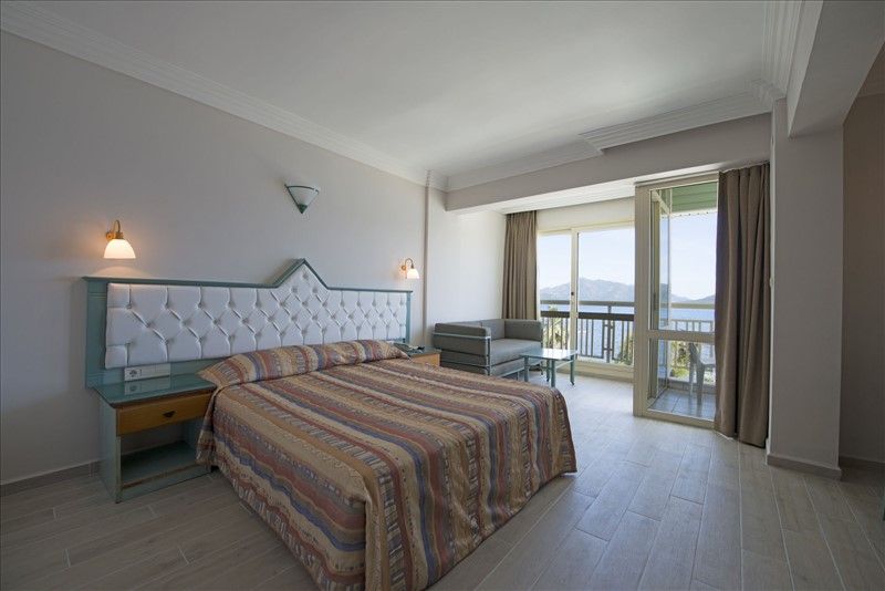 Отдыхали с 29.07.2025 по 05.08.2025. Уютный отель, прекрасное питание (свинина, говядина, баранина, белая и красная рыба, свежие овощи и овощи-гриль, оливки, маслины, сыры, фрукты, кондитерские изделия и выпечка). Ежедневно пекут вкусную пиццу. Море через 10 метров от бассейна, лежаков всегда хватало. С балкона открывается прекрасный вид на море и горы. Отель без маленьких детей, 12 плюс. Номер немного уставший, но всё рабочее. При выходе из отеля можно поймать маршрутку (40 лир) и проехать в центр Мармариса. Посетили старый город (словно в Греции побывали), а также прокатились на яхте по побережью Эгейского моря и встретили закат в открытом море. Небольшой минус- это шумная работа кондиционера, и в нашем номере на телевизоре были не настроены русскоязычные каналы. Отель однозначно рекомендую.