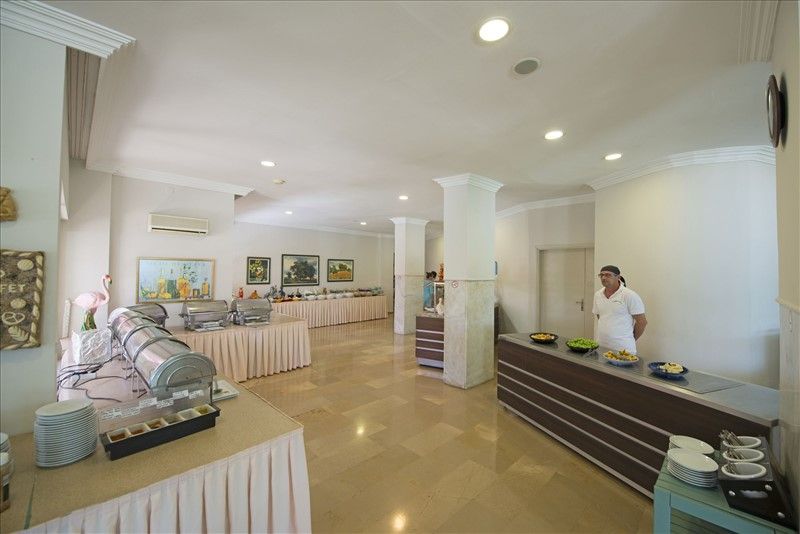 Сначала о хорошем: 1. На окраине, не так шумно, как в центре; 2. Номер чистый, убирались каждый день; 3. Нормальная кухня. Не сказать, что очень разнообразная, но выбор был всегда; 4. Хорошая скорость Wi-Fi. Ловил не только на ресепшине, но и в столовой, барной зоне и даже на пляже; 5. Услужливые уборщицы, официанты и бармены (спиртное наливали сколько душе угодно и даже двойными порциями). Ну и конечно о грусном: 1. Пляж маленький и не всегда чистый. Крупный мусор убирают, а вот бычки от сигарет - увы, нет. Мест на всех отдыхающих не хватает, приходилось двоим пользоваться одним лежаком; 2. Плохая звукоизоляция. Проживали на 4-м этаже (включая нулевой) в середине здания, но утром, при закрытой двери на балкон слышно проезжающие машины, особенно уборочные (подметальные), видимо передается вибрация по стенам; 3. Бутилированную воду дают только в день заезда, в остальные дни проживания - только за деньги; 4. Требует ремонта. Мебель старенькая, выкрашена краской, которая в некоторых местах отвалилась; 5. Грязные стаканы и чашки. Использовали или одноразовые (картонные) стаканы или пили холодные напитки через трубочки. На полу в столовой и особенно в барной зоне валялся мусор; 6. Ну и самая главная особенность – Вас накормят только когда есть браслет. В день прилета питание начинается с 15:30, т.к. браслет оденут в 14:00 (как раз закончится обед), а в день отлета в 12:00 Вы сдаете номер, Вам срезают браслет, и Вы больше не гость отеля, а человек с улицы. Обед, пляж и бар становятся недоступными. Максимум, что Вам предоставляется - это комната для хранения вещей (общая для всех) и туалет. Правда на обед можно было сходить, заплатив 300 лир на двоих. В Турции были в 3-й раз (до этого два раза отдыхали в Кемере) и постояльцем отеля становились с момента привоза в отель и до момента отъезда из отеля с правом пользования. Оценку ставил исходя из того, что приобретал путевку в отель 4*, а в итоге получил отель 3* (можно сказать – чуть больше 3*).