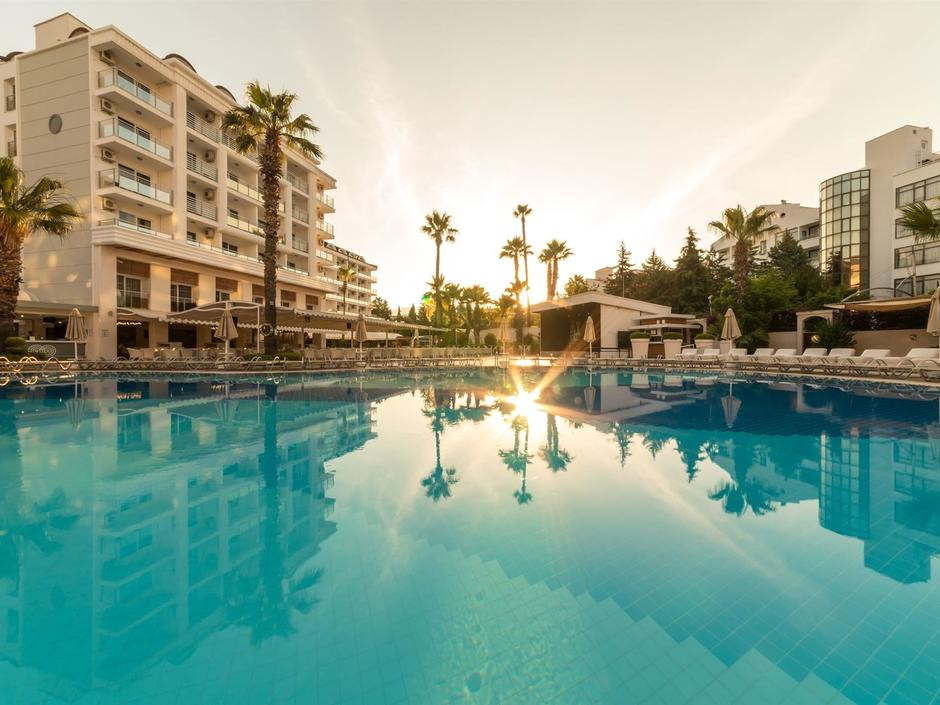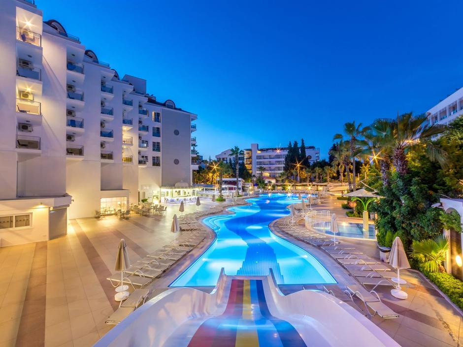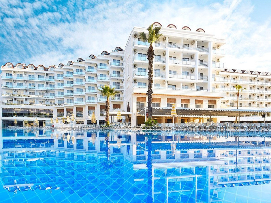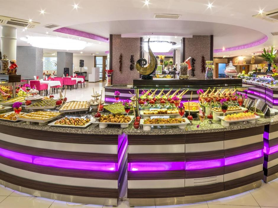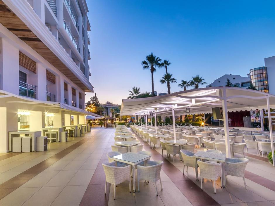 Свежий отзыв. Заселили около 12.00, не ждали 14.00. Номер не новый, в ванной трижды за 12 дней с потолка капала вода. Возможно, это только в нашем номере) Заявки на ремонт принимались и исполнялись быстро. На ресепшене один служащий, владеющий русским. Персонал дружелюбный. Питание чудесное, в ресторане через день живая музыка. Несколько раз были ужины тематические: турецкая кухня, азиатская кухня. Мясо, рыба, птица. Фрукты: яблоки, клубника, черешня, арбуз, дыня, нектарин, абрикос, груша. Есть детский стол и диетический стол. Официанты приветливы. В номере мини-бар - вода и сок. Пополняется дважды в неделю. Техника вся исправна. Уборка ежедневно. Белье смена через 3 дня. Полотенца - 3 на человека. Белье и полотенца - хорошего качества.Шампунь и гель для душа заполнялись однократно при заселении, более не пополнялись. Выдаются дополнительно пляжные полотенца, меняются хоть каждый день. Собственная территория отеля небольшая. Аниматоры - англоязычные. Бассейн, горка, настольный теннис, бильярд, дартс, аэрохоккей и настольный футбол. Гости - в основном англичане, голландцы. Чуть немцев и французов. Есть гости из Украины. Русских немного. Отельный гид присутствует 2 раза в день, утром и вечером по паре часов. До муниципального пляжа 3-4- минуты. Пользовались пляжем отеля Идеал Прайм, до него 10-12 минут неспешным шагом, есть лежаки и зонтики бесплатно. Через дорогу Голд-центр, Большой текстильный центр Аутлет, гипермаркет Мигрос. До центра на долмуше (маршрутке) 7 минут, 2.5 лир. Остановить маршрутку можно в любом месте, как и выйти из нее. Общее впечатление хорошее! Нам понравилось! Рекомендуем!