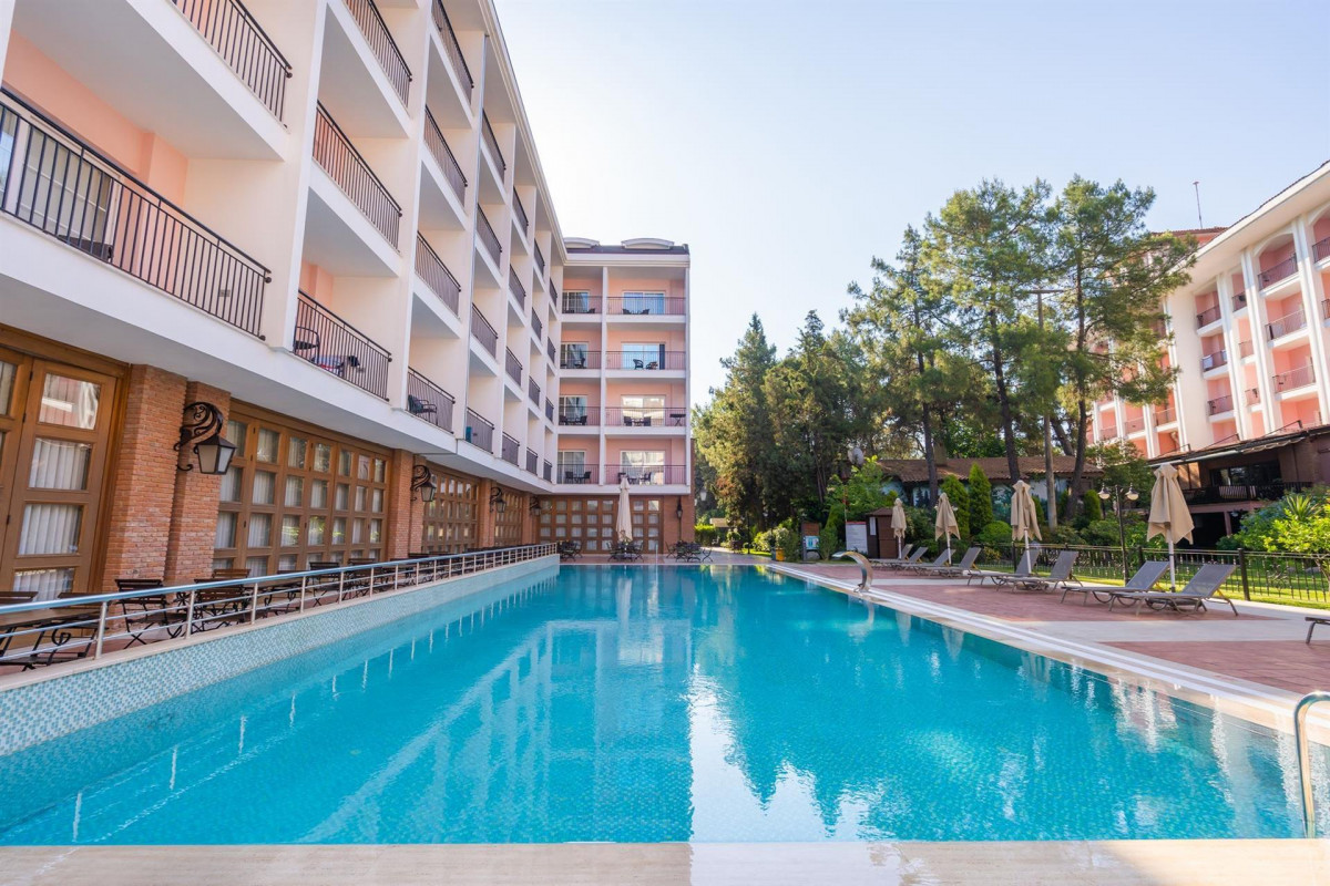 Отель «Grand Yazici Club Turban Thermal Hotel» состоит из основного 4-5-этажного здания с лифтами, 5-этажного дополнительного корпуса с лифтами и комплекса бунгало и вилл. К услугам гостей уютные и оснащенные всем необходимым номера. Рядом с отелем собственный песчано-галечный пляж. Поплавать можно также в бассейне на территории отеля. Отдохнуть и расслабиться гости могут в спа-центре. Вкусные блюда ждут гостей в ресторане отеля.