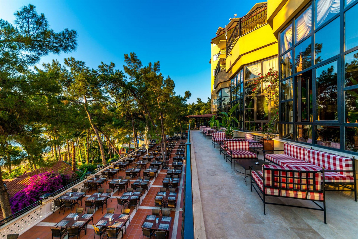 Отдых получился на славу. Все понравилось. Отличный персонал. Природа просто шикарна, именно в этом отеле сосны с шишками в перемешку с пальмами. Тенька достаточно много. Много баров, развлечение для детей и дискотека каждый вечер. По набережной можно дойти до Ичмелера и Мармариса. Также можно доехать на маршрутке, наличие маски обязательно, даже двери не откроют при ее отсутствии. Вход в море в пирсов (очень удобно) и небольшой кусочек спуска по мелкой гальке. В море у берега покусывают маленькие рыбки (пилинг). Везде стоят шезлонги и зонтики, все на всех хватает. Однозначно вернёмся. Кому нужен тихий и не суетливый отдых, советую сюда.