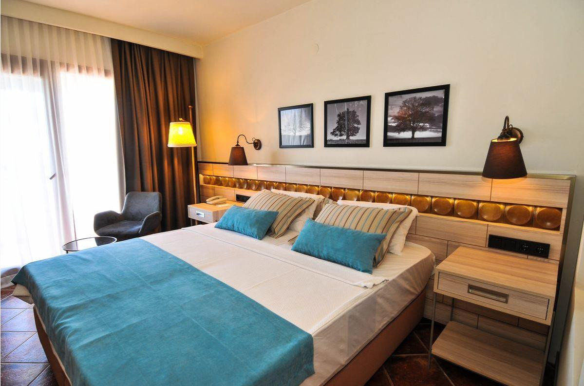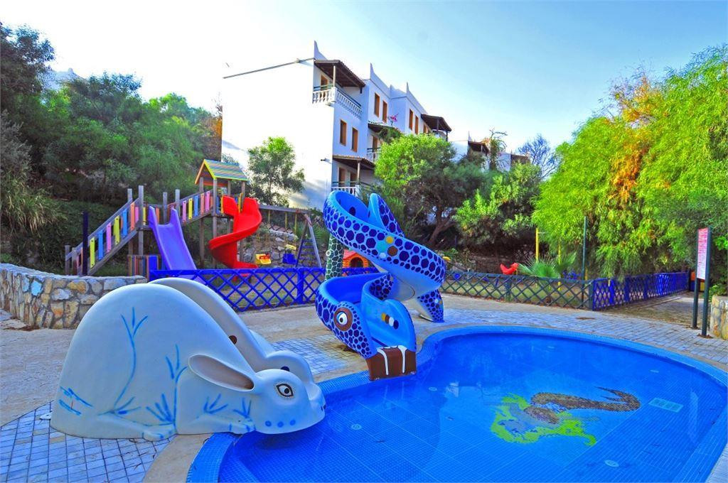 Отдыхали в составе двоих взрослых в июне 2019 года. До этого два раза отдыхала в Турции в Сиде. Отель тянет на стабильную тройку, не более того. Возможно, когда-то этот отель и был хорош. На данный момент он в полном запущении, начиная от номеров и заканчивая территорией. За территорией отеля особо никто не следит, много засохших кустов, поломанных веток и опавшей хвои (особенно в чайном домике). Что касается детских горок: из трех горок работают две и те в плачевном состоянии, третья вся заросла ветками от деревьев (ее даже не включают). У бассейна, что при горках, вообще сломана лесенка (есть только две верхние ступеньки). Из 9 дней отдыха только два дня видела человека, который присматривает за горками (ужас!). Что касается номера: мебель потрепанная, но для меня это не критично было. Кондиционер, телевизор - вот они порадовали, работали хорошо и новенькие. Из 9 дней отдыха три дня были проблемы с водой в номере. Придя с пляжа, ты не можешь помыться перед ужином, потому что воды нет вообще никакой, ни горячей, ни холодной... - это, конечно, очень огорчало. Белье и полотенца в номере хорошие, белоснежные и чистые, полотенца на пляже тоже хорошие, без дырочек и пятен (желтенькие). Питание: для меня питание просто "полный отстой", нормального мяса или рыбы вы не найдете. Из фруктов был арбуз (хороший), дыня (не спелая), персики (не спелые и порезанные на дольки), хотя в июне в Турции сезон черешни и клубники. Сладости: пирожное бисквит, печенье (присоленное), в принципе это все и в чайном домике. Говорить о турецких сладостях в этом отеле вообще не стоит, их там просто нет, мороженого тоже нет. Мороженое можно купить на территории отеля в магазине или у бассейна (стоит примерно 2 доллара). При заселении дают 1,5 литра воды (в бутылке), потом вы можете воду либо покупать сами или же набирать ее в свои бутылки в кулерах отеля. Вывод: если не обращать внимание на разруху отеля, приемлемую цену за тур, то стоит увидеть красоты Бодрума. Прекрасные виды (которые напоминают Грецию) и чистейшее море!!! P/S: Если вы хотите купить Турецкий текстиль (скатерти, полотенца и т.п) особо вам не удастся сделать это в Бодруме, этого здесь нет, как в других регионах. Но!!! По средам (только по средам) в город приезжает выездной рынок (они называют его базар), там можно купить все, фрукты (в 2-а раза дешевле, чем в магазинах), овощи, вещи, текстиль ... (а главное - торгуйтесь на базаре, можно хорошо сбросить цены). До базара можно дойти пешком от отеля (примерно минут 30). Вы выходите из отеля, идете всегда по главной дороге, держась правой стороны, как бы огибая бухту или можно доехать на автобусе (такси). Хорошего всем отдыха!!!