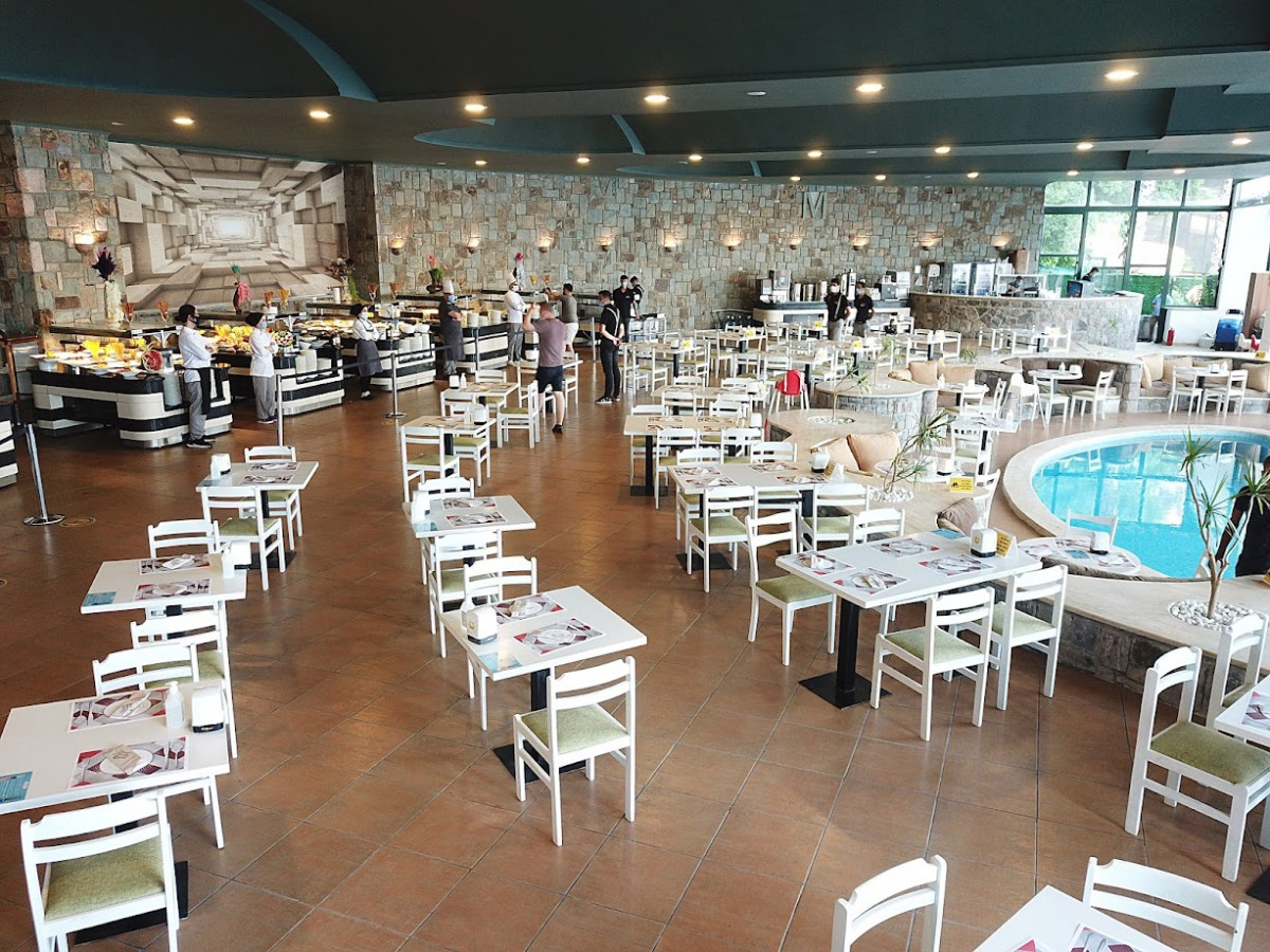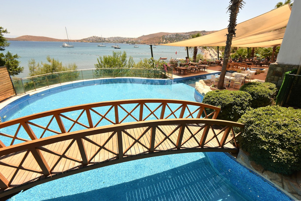 Доброго времени суток!!! Ребята, крик души! Отдыхаем в этом отеле первый и последний раз. Итак, в данном отеле, кроме замечательного вида на бухту, я больше плюсов не увидел, отвратительный сервис - это ещё мягко сказано, мы с женой заехали в отель в 20.40. Вместо того чтобы отправить нас на ужин, как происходит во всех нормальных отелях, нас попытались заселить в номер, который я сразу же вынужден был заменить, так как он находился на первом этаже, а замок у балконной двери был сломан и получить пароль от сейфа не представлялось возможным. На секундочку, пароль я получил через сутки после заселения, второй номер был не лучше, дверь на балкон так же была сломана и пароль от сейфа так же был мне не доступен, на ресепшене работают явно не вменяемые люди, я вызвал техника и мне его предложили подождать в номере. ОН ПРИШЁЛ ЧЕРЕЗ СУТКИ!!! Еда - это отдельная история. Я отдыхаю в Турции не первый год, в моем багаже есть и 3* в Мармарисе и 5* в Бодруме, но это полный абзац, я здесь уже неделю на завтрак ни разу не видел яичницу, да-да, ребята, обычную яичницу, тут только варёные яйца плюс омлет в лучшем случае в перемену с тем, что не доели вчера. Дыни зелёные, арбузы кислые, приборы грязные. Знаете, мне это напомнило отдых в Тунисе в прошлом году во время пандемии, но там хотя бы ребята старались, анимация была на высшем уровне, тут же полный пипец. Анимации вообще нет, спортзал покрыт пылью, нет железа, из спорта - литрбол и ходьба по лестницам, персонал общается исключительно через телефон (переводчик), это, конечно, забавно, но решение проблем не приносит, а да насчёт воды, горячая вода отсутствует ну или нам не доставалась. Хотя я встаю в 6.00, помыться горячей водой я так и не смог, я в данный момент ещё тут. Друзья, если вы читаете этот отзыв, подумываете о поездке в этот отель. Я вас прошу бросить эту затею, пожалейте свои нервы и деньги. Отелю я ставлю 1 с тремя минусами - просто гадюшник.