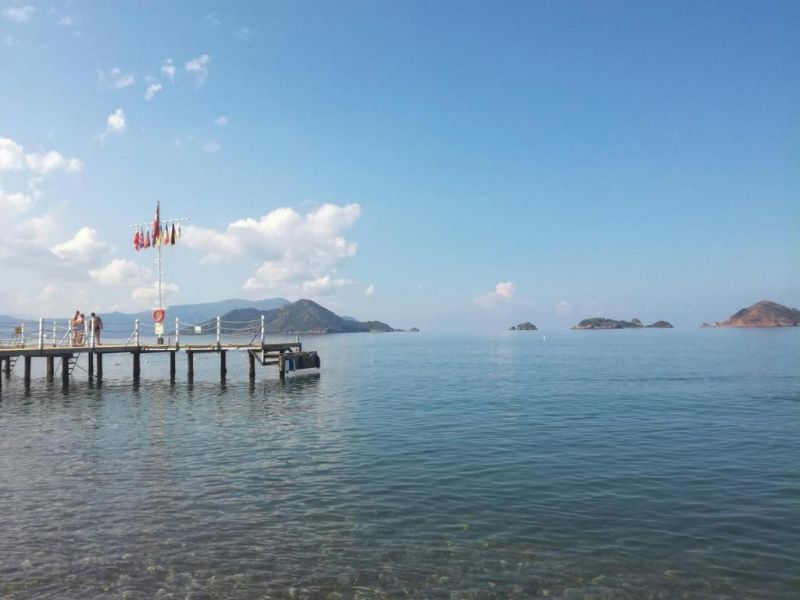 По уровню этот отель 3* не больше. Начну с плюсов тропа до моря по лесу красивая территория, у вас будет много красивых фото в разных локациях А теперь минусы - нет кондера в ресторане, ужин и обед как в хамаме - сильная нехватка персонала, из-за этого не успевают убираться, столиков не хватает, тарелок, ложек, вилок. - пляж: грубые камни и везде грязно. Не убираются, делаю замечание, не реагируют - на пляжу кушать невозможно, осы везде (потому что не убираются) - не наполняют мини бар, никакой воды в номере, чайника нет. - нет кальяна!!! - еда вроде много, а по факту есть нечего. И прямо видно, что экономят: пахлава с арахисом! А фаршированные баклажаны только с рисом и специями - от всех достопримечательностей отель далеко. Рядом глухо. Такси до фетхие 20 долларов в одну сторону