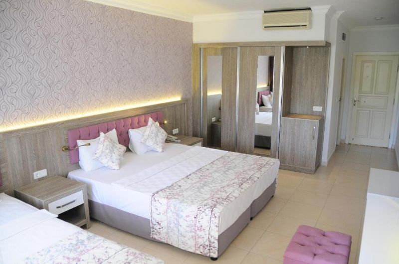Не все фото и описание отеля соответствуют действительности. Ботанических садов нет, территория маленькая, гулять негде. Инфраструктуры нет. Номера на 3, телевизор не работал, мастер сказал ни где не работают, наврал. Везде работали, починить не смог или не захотел. Ну ок, не важно. Кондиционеры старые, не работал, починили. В мае номера сырые и постель вся мокрая. Поменяли номер на такой де, рядом ресторан, тележки грохочут до 00 часов и с утра. Сон - для слабаков!)) Анимация норм. Музыка с утра до 00 очень громкая, тишины нет, с детьми мамочки мучались. Да и репертуар не заряжает, Пляж - грязный, песок с камнями, море грязное. Спасли отдых экскурсия по островам на корабле, купленная на турецком сайте и еда на 5, респект поварам, хотя еда не была нашим приоритетом при выборе отеля. Неухоженная дорожка к морю сквозь болота, кваканье лягушек и торчащие стволы мертвых деревьев при полной луне - впечатления жутковатые. Цена не соответствует от слова совсем. Второй раз даже даром не поеду.