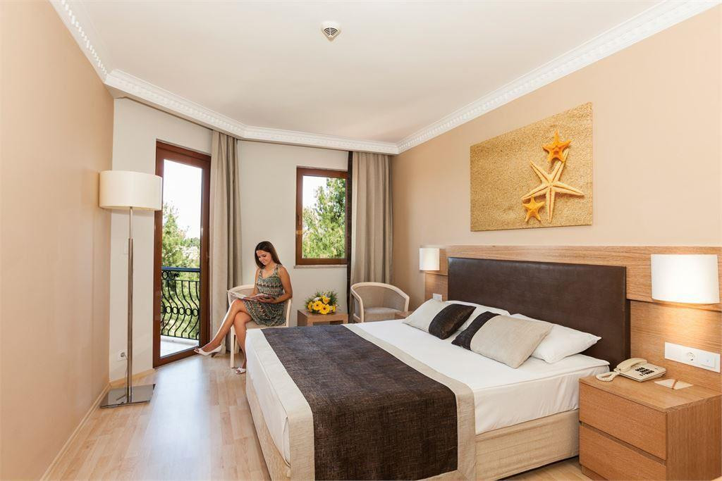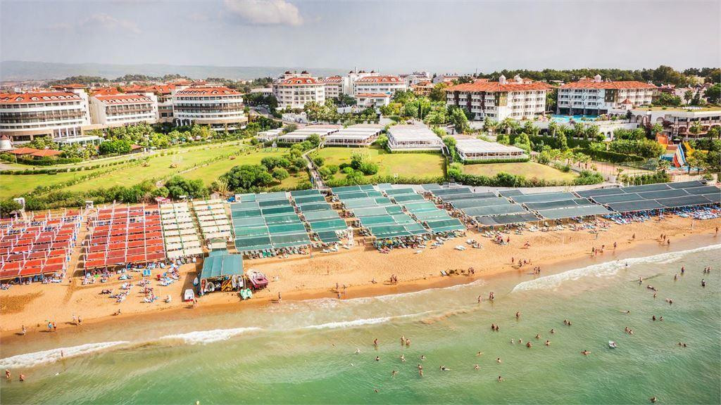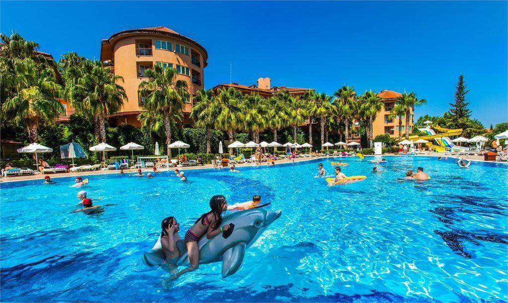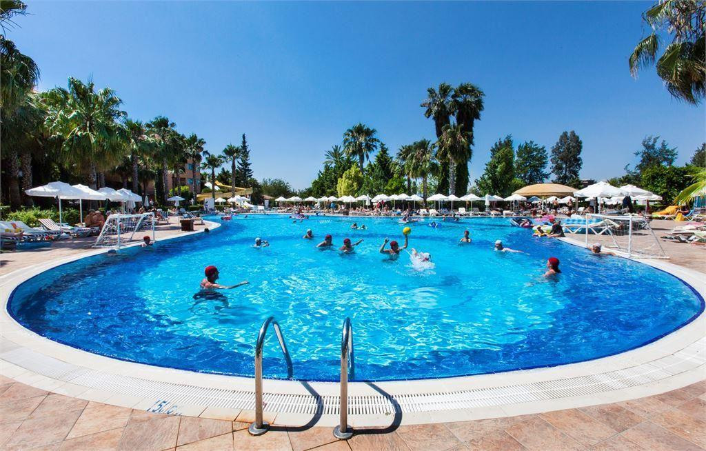 Всем привет,находимся сейчас в данный момент в этом отеле.Знаете, вот все супер.Я поставила твёрдую 5.Нас все устраивает.Начнем с начала:Ехать до отеля 1.20,наш отель был 3,но они тут все оказались рядом,так что приехали даже не заметили как.Прибыли рано утром в 8.30 где то.На ресепшене встретили,отправили на завтрак,персонал вежливый и все исполняет,только скажи что надо.Заселяют как и везде в 14.00,но нам сказали прийти к 10.00 т.к у нас малыш 2 года.Но мы как ушли на море,так и пришли к 11.30, нам сразу дали ключи и проводили в номер.Мы уже здесь 4-й день,и ни сколько не пожалели что выбрали этот отель.Отель большой,красивая зелёная территория.Убираются каждый день.Живем на крыше как карлосоны,точнее на мансарде.Вид дали на бассейны и горы.Вобщем советую этот отель.Кухня отличная,еды очень много и вся разная,есть детская кухня,это очень хорошо.В Турции была раз 15,много отелей видела,есть с чем сравнить,рекомендую.Про море и пляж вобще слов нет,море горячее,песочек,шезлонгов хватает,не смотря на то что отель полный и мест свободных нет,берег идеальный и очень долго мелко,с детьми вообще самое то.Вобщем правда очень хорошо,рядом мигрос,рынок,ларечки,кафешки кто любит.А так то все хорошо.Минусов не искала писать про них не буду,если вы едите их иска,то найдёте,я не вижу их.Всем хорошего отдыха.