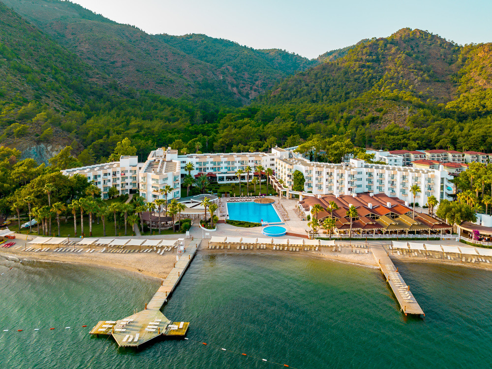 Хочу выразить благородность! Красивые ухоженный отель! Виды просто шикарные ,кто хочет отдохнуть от суеты . Отдыхали с 17 мая 25 года ,людей мало ,с погодой нам повезло ,море чистое ,прыгали как дети с пирсов,еда без изысков но вкусно ,всегда есть из чего выбрать ,номера (мы жили в виллах) с устаревшим ремонтом ,но всегда очень старались убирать, анимация прекрасная ,что для детей ,что для взрослых ,все найдется чем там заняться ,время пролетело незаметно , до Мармариса ехать мин 15-20 ,автобусом. Вообщем хороший семейный отель.