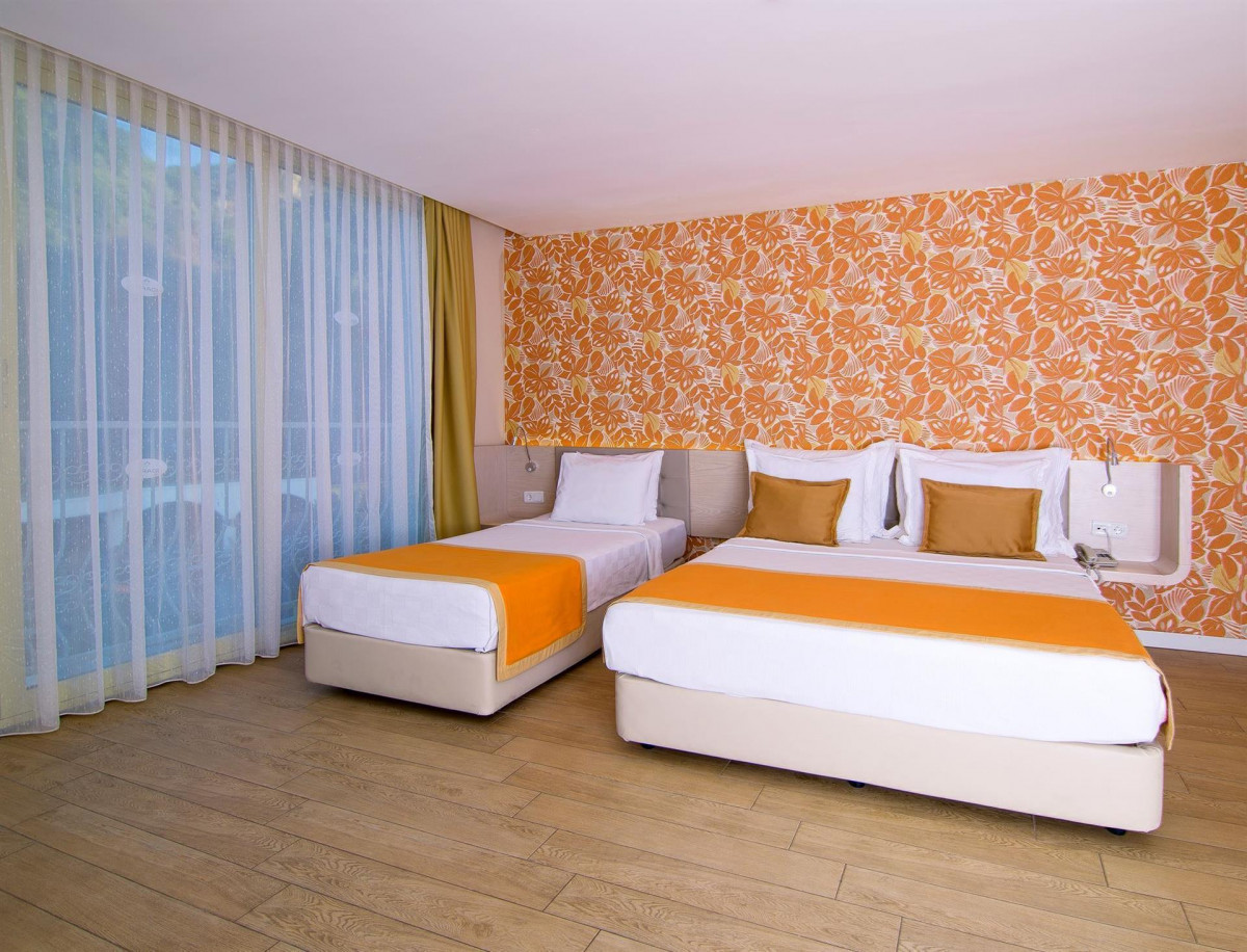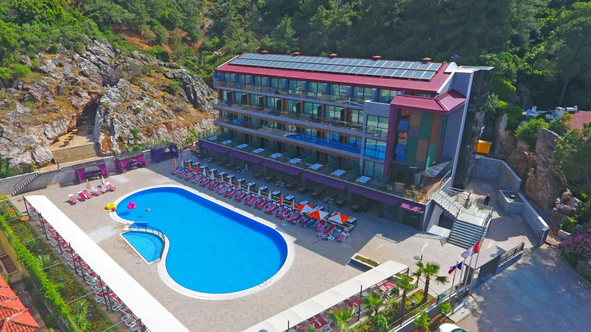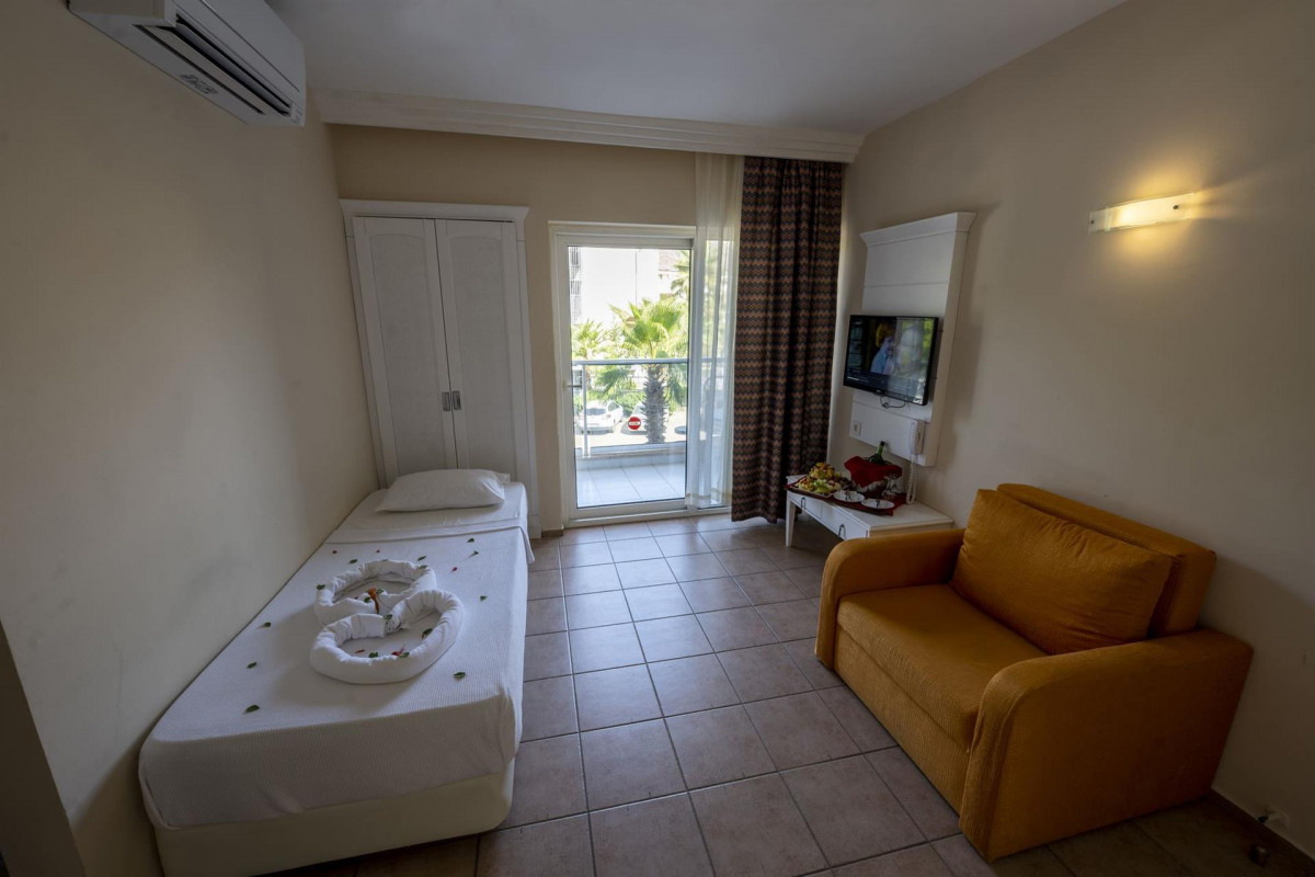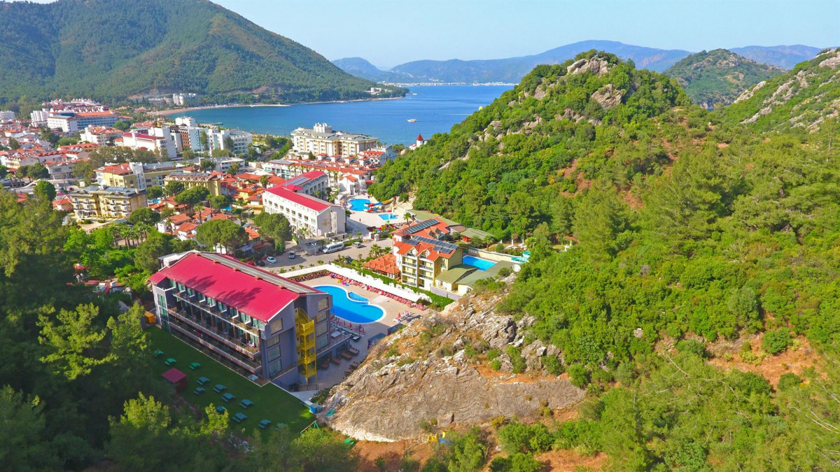 В целом отдых понравился! Отдыхали семьей из 4 человек мы с мужем и 2 детей 4-х и 5-ти лет. При заселении произошла небольшая заминка с номером, предоставили 1 двухспальную кровать и 1 односпальную,но к вечеру решили вопрос, принесли еще одну кровать и недостающие подушки. В этот день заселялось очень много людей,персонал просто сбивался с ног. Наш номер находился на втором этаже,окна выходили на соседний отель,но это не омрачило нашего отдыха,поскольку мы туда приходили только спать! Полотенца меняли ежедневно, а вот уборка в номерах хромает, за 7 дней не убрались ни разу! Отель не большой, расположение очень удобное, находится не на отшибе,рядом остановка 15 минут до центра города Мармарис! Маршрутки ходят каждые 3-5 минут,магазины,торговые палатки,всевозможные кафешки, скучно не будет. Еда разнообразная, посуда чистая, бар работает, так же работает кофейня в которой есть прекрасный кофе,горячий шоколад, по вечерам есть анимация ! Персонал отзывчивый,территория ухоженная, чистая. детская анимация однообразная,есть небольшая детская площадка и игровая комната. Снимаю звезду за пляж! Вот с пляжем нужно поработать! Везде окурки, по пляжу гуляют собаки, и рядом с лежаками проходит разрытая труба.