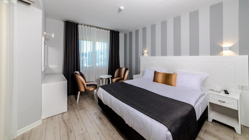 Очень достойный уютный отель, с новой белой мебелью, после ремонта, питание хорошее, персонал внимательный, отдыхали май 2018, небольшая территория, пляж недалеко, зонты и лежаки бесплатно, ВАЙ-ФАЙ в номере, все понравилось.