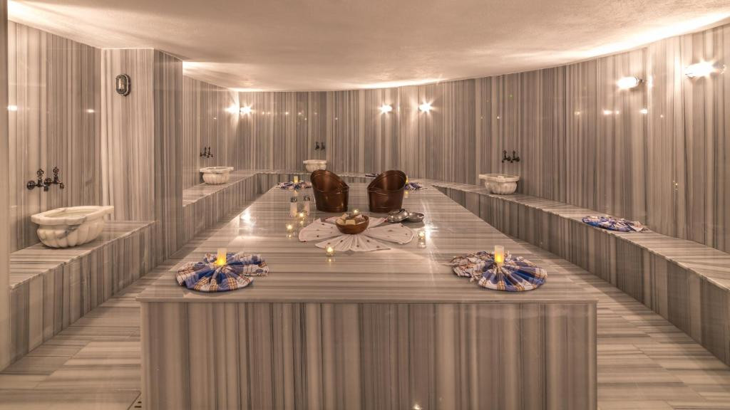 Хамам пишут бесплатно, это сидишь типо сауны, но вместо скамеек мрамор и всеее, за отдельную плату все сделают, т.е 40$ и массаж 20$. Персонал реально как будто заставляют улыбаться, бедные, улыбки натягивают, анимации не было нам объяснили, типо конец сезона, поэтому нет. Еда, конечно, ужасная, и каждый день одно и тоже, первый день хотелось все попробовать, но потом поняла, кроме мяса и риса лучше не рисковать аппетит испортить себе можно быстро. Есть овощи и фрукты, выбор небольшой - мандарины, яблоки, один раз был виноград, помидоры и огурцы. Fatih и Kurai - большие молодцы, хорошо работают для англичан, в первую очередь обслуживают их, даже если первый русский попросит, дальше музыку ставят только английскую. Мы сколько просили, хоть турецкую поставить, все равно не переключают, только английскую. На просьбы всегда ответ OK', но не выполняют, либо отвечают НЕ ПОНИМАЮ!!! Единственный, кто не улыбался, это был менеджер Isa, видимо, ему можно было. Насчет полотенец - оставляешь 20$ задаток и меняешь, сколько хочешь. Если хочешь пожалеть, что потратил много и скучно, то это точно сюда - в MOTTO PREMIUM MARMARIS 4*