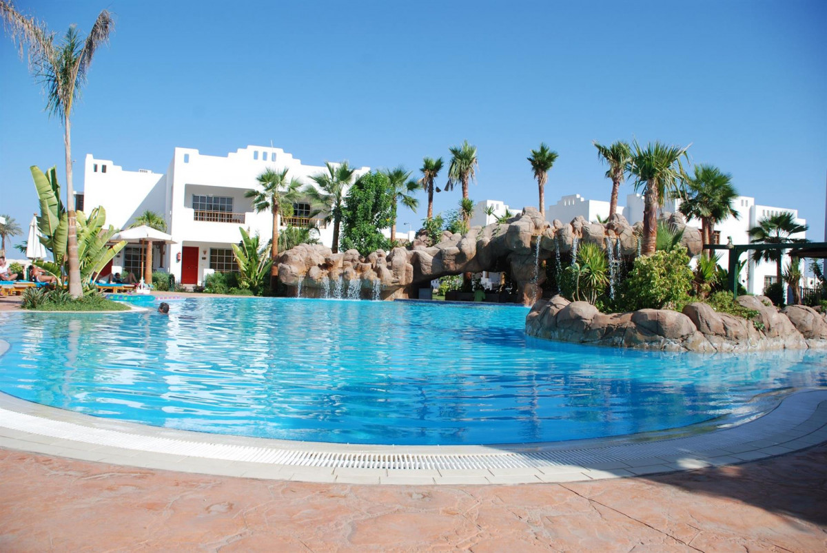 Отель на твёрдую 4. Отдыхали в октябре 2021 г. Большая красивая ухоженная территория. Очень дружелюбный и отзывчивый персонал, малоговорящий на русском. Но проблем с этим не возникло, в помощь переводчик. Делают работу за свои кровные, как говорится. Нет той настойчивости как у турков, что за каждое действие, мы обязаны дать чаевые. Мы жили в отдельном домике, со своей кухней, спальней, душевой и мансардой, конечно, в моменте под «ушатанными». Но все в рабочем состоянии. Уборку делали каждый день. Единственное один раз не доложили полотенца, пришлось идти на ресепшн и говорить об этом, чтобы потом по итогу с нас не списали 15$. Ввиду огромной территории, очень удобно было вызвать через ресепшн электромобиль и Вас отвезут в нужное место. Заселяют всех по «нациям» русских в домики к русским, Арабов с арабами, и т.д. Это удобно в плане общения и ориентации на территории, т.к. с персоналом общаться нужно было через переводчик. Большой ресторан. Кормили на убой как говорится. Единственное было мало фруктов, разнообразия супов. В остальном на 5! Каждый вечер выходил шеф-повар и контролировал работу! Просто профессионал своего дела, сотрудник Ахмед. Очень внимательный, горит душа за свою работу, знает своё дело на 5 ! Следит за малейшими моментами, очень приятно наблюдать когда ты в такой заботе! В ресторан по пропускная система, ввиду того, что на территории отеля не только гости по путевкам, но и люди, которые снимают там домики, как апартаменты, загородный дом что ли. Мы узнавали, это очень дёшево. В шаговой доступности расположены бассейны, от нашего бунгало прям 10 метров. Wi-fi только на ресепшн и на центральном бассейне. Это конечно большой минус. Чтобы подгрузить фото, сидела часа полтора, не говоря о видео. Ну и ещё наверное пляж 3-я береговая. Ехали на автобусе минут 7 до него. Напоминает наш Геленджик. Очень маленькая территория пляжа, ушатанные шезлонги, всегда почти все занято, в отличие от соседних пляжей. Мы уходили в итоге на соседний пляж. На баре дают бесплатно напитки. Анимация вечером на первом этаже ресторана. Для детишек самое то! Девчонки, кто проводит, молодцы! Несколько раз наблюдали за приглашёнными группами, давали разные постановки, удивляли в моменте. Отдых на твёрдую 4.