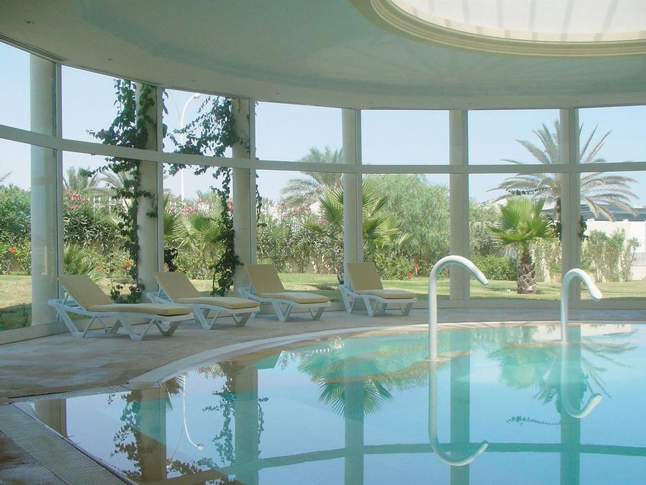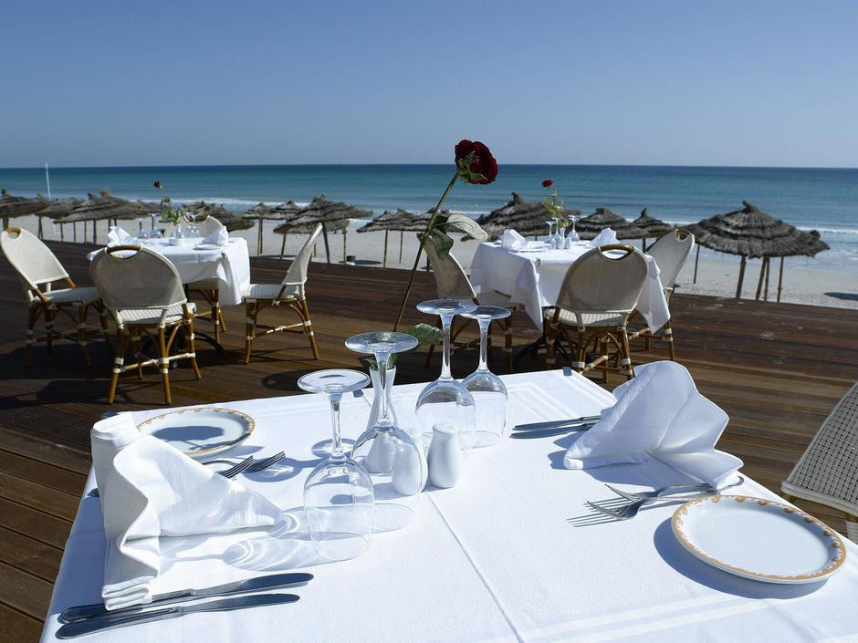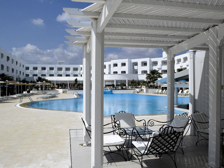 Прилетели в аэропорт Туниса в 12.00 ч. Получали багаж, проходили таможню примерно около часа. Нас встретили представители anex tour, направили к автобусу. И вот тут ожидал первый "сюрприз" в виде микроавтобуса типа наших Газелей. Мы подошли последними, поэтому мне досталось место впереди справа на колесе. когда я села, мои коленки были на уровне глаз. Чемодан нужно было подавать в окно, подняв его выше головы, таким же образом их выдавали обратно по приезду в отель.В автобусе пыльно и грязно. До отеля ехали 2ч.30 мин. С anex tour путешествую не первый раз, но впервые не предложили воды при посадке. И впервые трансфер был таким отвратительным. В отель приехали около 4 часов. Сразу предложили б/а коктейли. Мы приехали с малышкой, ей сразу принесли чистой воды. Минут через 20 нам предложили номер за доплату с видом на бассейн за 6 дол. в сутки, (мы приехали на 10 ночей), ценник на номера с видом на бассейн, а значить и на море был на общем обозрении на стойке рецепшен. Я попросила показать номер. В номере всё, как мы заказывали, с детской кроваткой. Но замок на балконе не работал. Попросила показать номер без доплаты, точно такой же,только без дет. кроватки, и с видом на забор, спрятанный за кустами. Взяли номер без доплаты и не ошиблись. Малышка после обеда спала, а мы перелезали через балкон и устраивались на мягком газоне загорать.Тихо, спокойно и красиво, как в деревне. В номере была третья кровать в нише. Постельное бельё для ребёнка принесли после третьей просьбы. Дважды подходили и вежливо просили принести комплект постельного белья, в ответ улыбаются и говорят ждите сейчас принесут, в третий раз пришлось жёстко объяснить, что был заказан номер с детской кроваткой, которой нет, кроме этого отель берёт доплату за младенцев 60 дол., малышке уже пора спать - бельё принесли через 5 мин. Территория отеля небольшая, но очень ухоженная. Сотрудники постоянно убирают, как в отеле, так и на территории. Чисто везде. В номере уборка хорошая. Но гель, шампунь и мыло только при заселении. Объёма моющих средств хватает ровно на 1 раз. В номере всё работало. Нашли 3 российских канала на ТВ. Замок на балконе за 10 дней делали трижды. Вообще в отеле проблема с замками на балконе, жаловались все. Хорошо, если ваш номер не на первом этаже, а наш на первом. Сейф в номере есть, за доплату, но он маленький, войдут только документы и кошелёк. Планшет или фотоаппарат не поместятся. Интернет 3 дин. за час. Питание в отеле нормальное. Всегда можно найти, что покушать или накормить ребёнка. Мясо было разнообразное: говядина, баранина, индюшатина, курица, всегда в ассортименте, рыба в обед и на ужин, морепродуктов не было, разные гарниры из риса, картофеля, овощей, спагетти и макароны, кус-кус много баклажан и т.д. В отзывах пишут, что еда острая, это не правда. За 10 дней были апельсины, арбузы, персики, абрикосы. Мороженное было через день. Хорошие кондитерские изделия. По выходным зажигали свечи. Любые фрукты свободно выносили за пределы столовой, малышке с ужина брали еду в номер, для того чтобы покормить её перед сном. Ни разу нам не сделали замечания. Посуда всегда была. Клубнику покупали недалеко от отеля в магазине по 5 дин. за кг., если пройти подальше, то можно купить за 2-3 дин., абрикосы за 1.5 дин, финики 6 дин. за кг. Алкоголь неплохой, в мае очередей за ним не было. Может, потому, что отдыхали в отеле 70% француз
