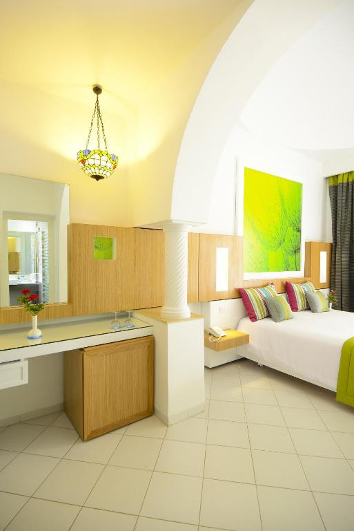 Добрый день всем кто планирует свои отдых в Тунисе, хочу посоветовать данный отель!!!! В Тунисе я впервые была, отдыхала и в Турции и в Египте и другие страны, но этот отель мне запомниться навсегда, и если я поеду еще раз в Тунис то только в этот отель. Во-первых; что касается отеля, территория отеля очень большая, размещение в бунгало, номера очень хорошие комфортабельные, каждый со своей террасой, убирались в номерах каждый день, при всем притом ни разу не платили. Если вы планируете свои отдых с детьми то поверьте им там скудно не будет, на территории большой свой аквапарк, с 8 горками на любой возраст, так же детская анимация с утра до вечера, но об этом я отдельно напишу. Питание хорошее, мы отдыхали в период созревания клубники, да и она там была, так же все фрукты, но одно но,мы были первым заездом в этот отель русских, народу было мало, но к 1 маю заселили весь отель(1000 персон) и 90 % были русские, и как вы понимаете народ у нас дикий, набирали блюдами фрукты и ягоды, не доедали, оставляли (тунисцы были конечно в шоке)))))) лишь поэтому порой не хватало фруктов всем, так же касается и алкоголя, к вечеру в барах заканчивался виски, приходилось идти в бар на пляже, который работает 24 часа, но и там иногда была с этим проблема)))) но помимо виски всегда есть местная водка, ром, джин и вино, так что это не проблема. так как мы приехали в начале сезона море было холодное, но в бассейнах на улице спокойно купались, пляж свой, огороженный, чистый, лежаков всем хватает. Так же хочу сказать ходили на телассотерапию в местный спа, нам очень понравился индивидуальный подход к каждому клиенту, лучше чем в турции и намного, почему говорю про местный спа, гиды предлагают поехать в другой отель за спа процедурами,я конечно не понимаю для чего они это делают антирекламу, что я считаю что это не правильно,тем более мы приехали возможно социально в отель где уже есть свой спа салон, тем более цены здесь ниже чем предлагают тур операторы. Ну а теперь хочу написать отдельно про анимацию))))) могу сказать одно я в восторге!!!!!!!, ни в одном отеле я не видела такой анимации,ребята работают на износ, с 9 утра и до поздней ночи, с ними не соскучится ни млад ни стар, подобраны они индивидуально, каждый вечер у них была своя программа,у каждого из них танцевальные данные,шоу делали на 5 ,ни разу не было что бы они сидели без дела, аниматоров много и поэтому каждому гостю было уделено внимание, как ребята себя называют: аниматор-терминаром, как это точно!!!! когда в других отелях аниматоров днем не сыщешь здесь они всегда на виду, даже после обеда вместо отдыха они всегда репетируют новые танцы, что бы что то новое показать гостю!!!!! Расположение отеля очень хорошее, в 15 мин от г.Монастир и таже от г. Сус, на такси 10 дина и ты в центе!!!! Ну на этом я думаю все!!!! повторюсь, если поеду то только в этот отель, а вам хорошего отдыха!!!!!!!