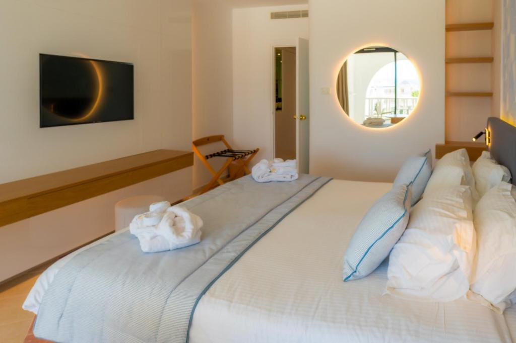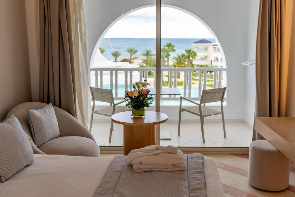 Отель представляет собой трехэтажный центральный корпус и два соединенных с ним блока. 70 % номерного фонда с видом на море.
