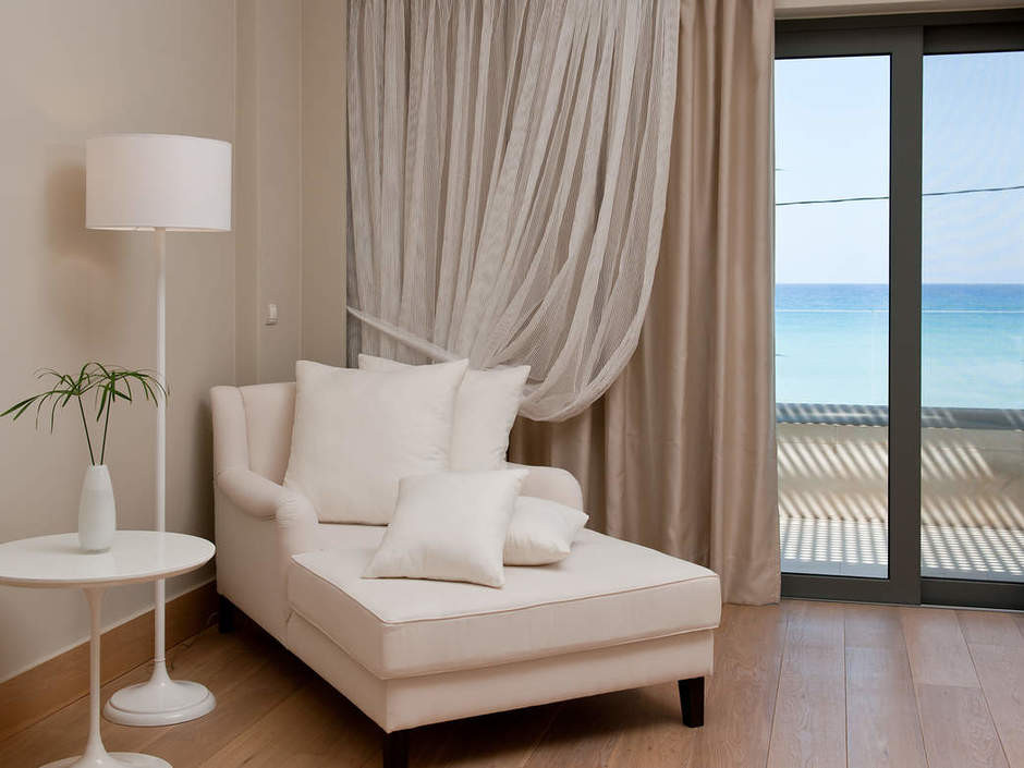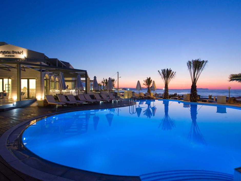 D 76 км от г. Ираклион, в 2 км от центра г. Ретимно, на берегу моря, на набережной.