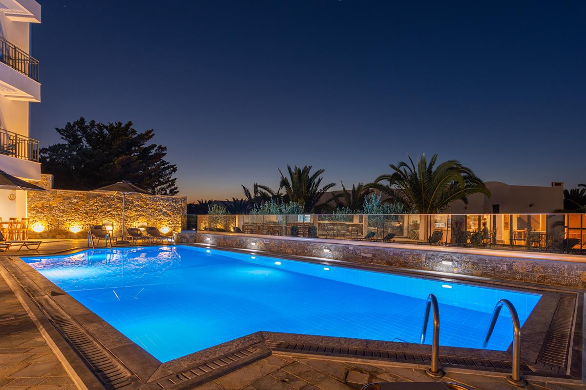 В 22 км от аэропорта г. Ираклион, в 41 км от центра г. Агиос-Николаос, в 2 км от г. Херсониссос.