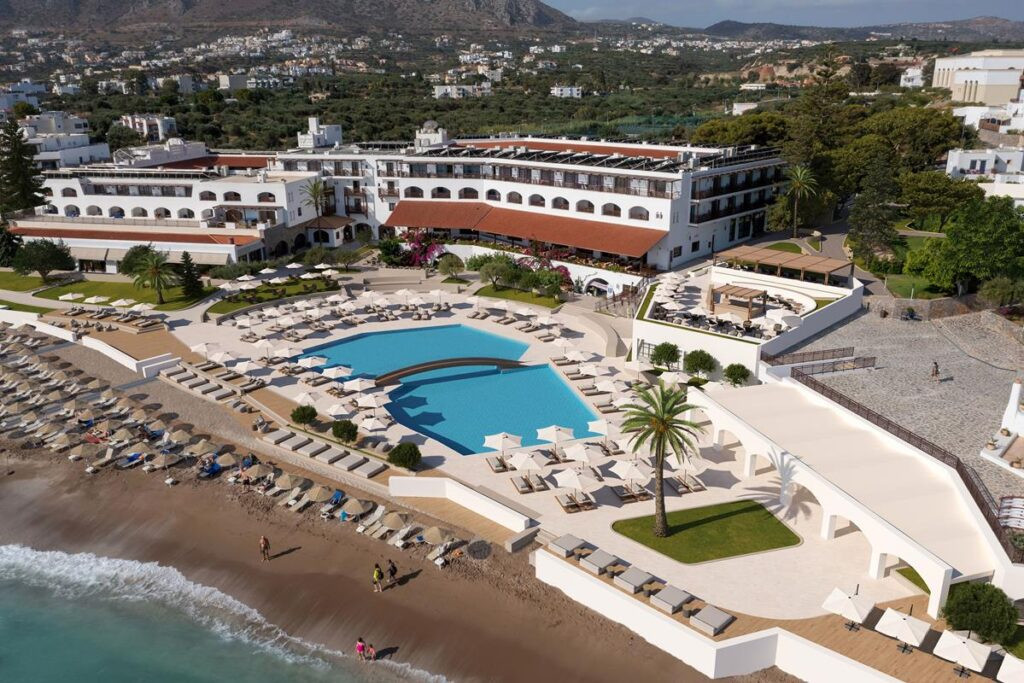 В 24 км от аэропорта г. Ираклион, в 40 км от центра г. Агиос-Николаос, в 500 м от центра Херсониссоса, на берегу моря.