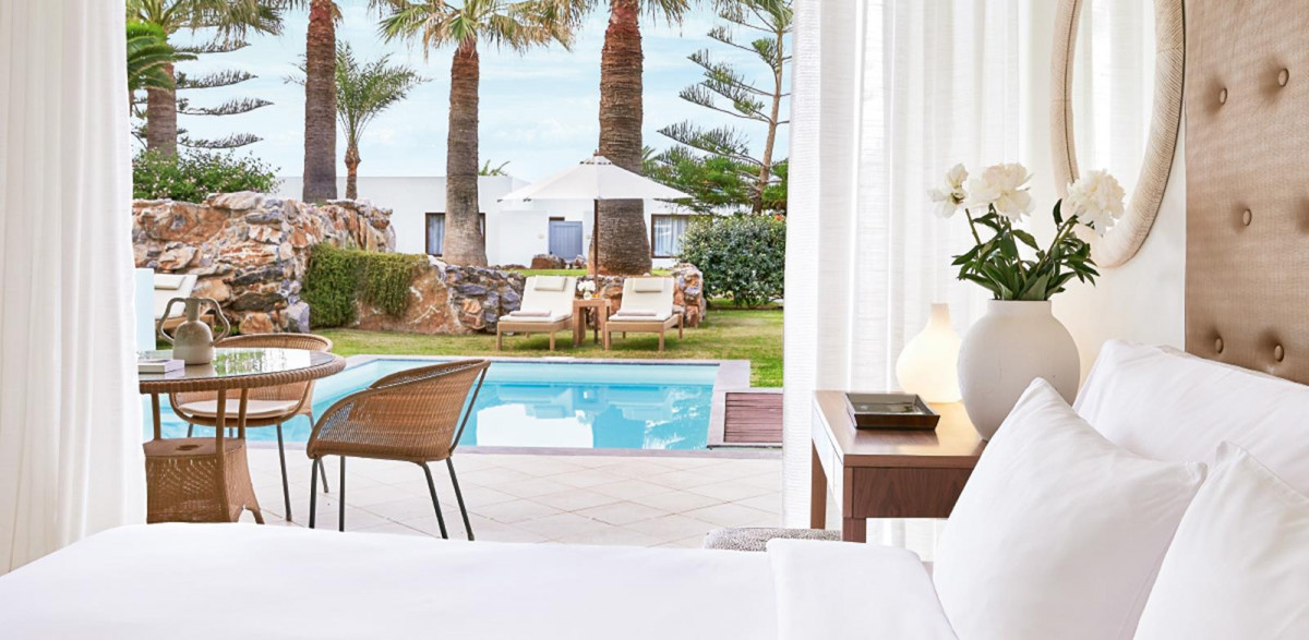 В 18 км восточнее международного аэропорта г. Ираклион, в 169 км от аэропорта Ханьи, в 10 км от г. Херсониссос, в 2 км от поселка Гувес, на песчаном побережье. Автобусная остановка в 1 км от отеля.