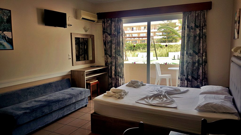В 68 км от аэропорта г. Ираклион, в 70 км от г. Ханья, в 7 км от Ретимно, в местечке Аделе, на первой линии. Автобусная остановка находится в 50 м от отеля.