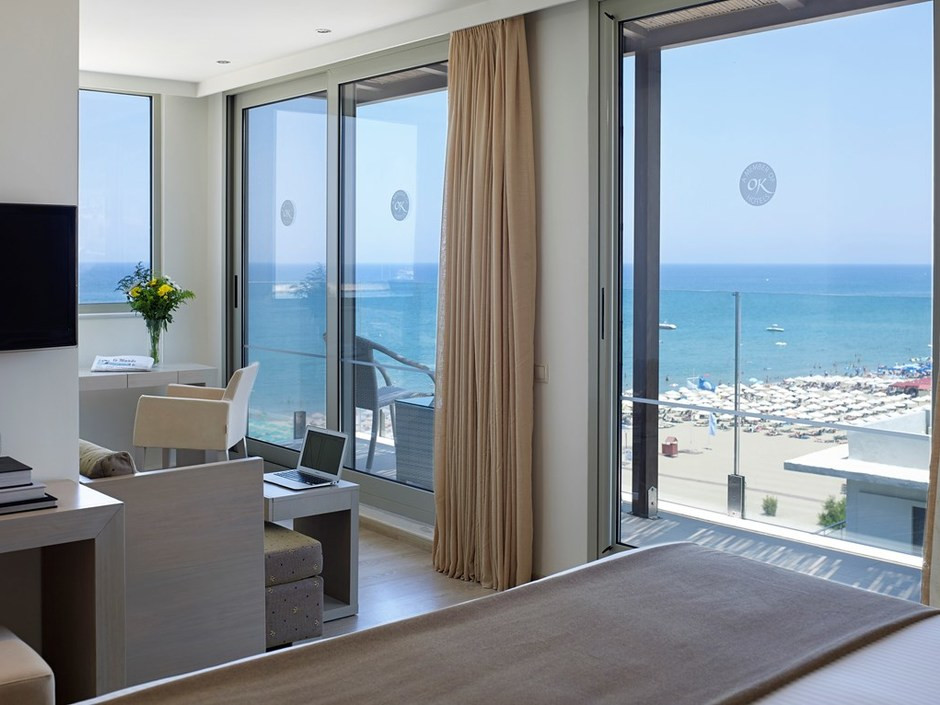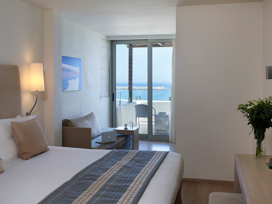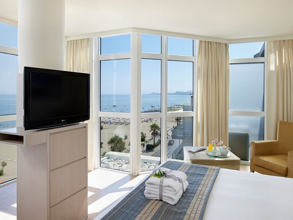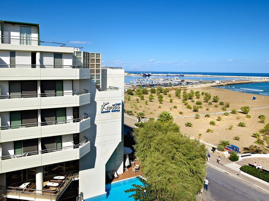 На северном побережье острова, в 60 км от аэропорта Ираклиона, через дорогу от песчаного пляжа, в 500 м от исторической части города Ретимно.