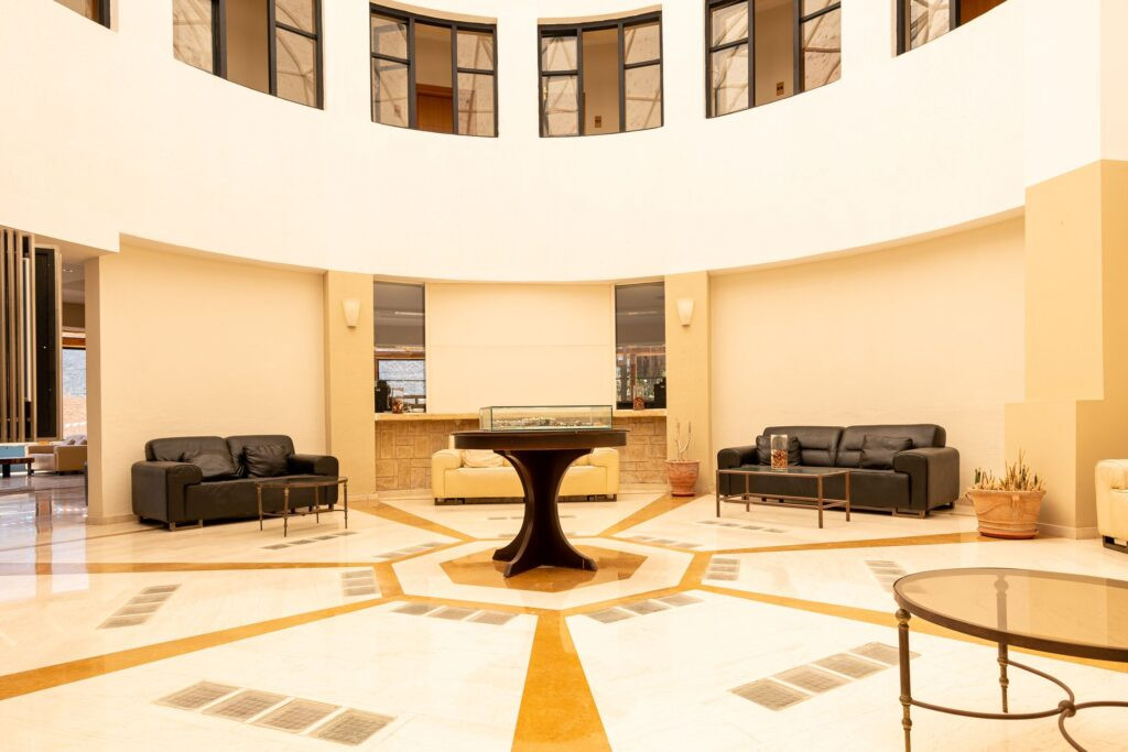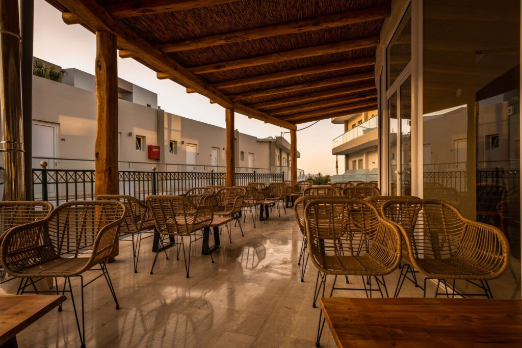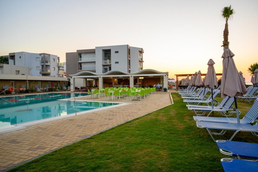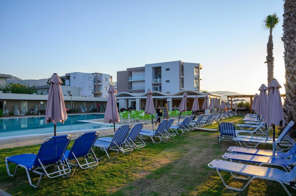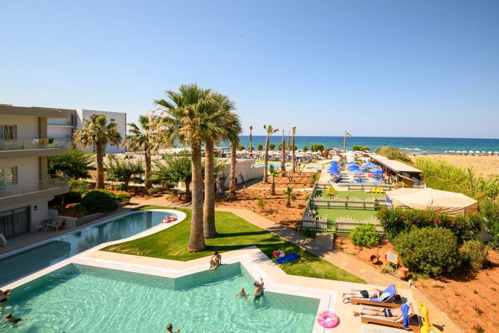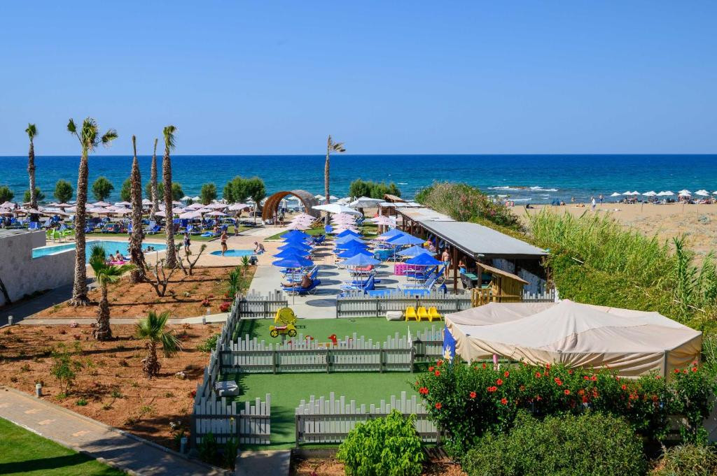 В 35 км от международного аэропорта г. Ираклион, в 7 км от г. Херсониссос, в 1 км от центра курортного местечка Малия, на берегу моря.