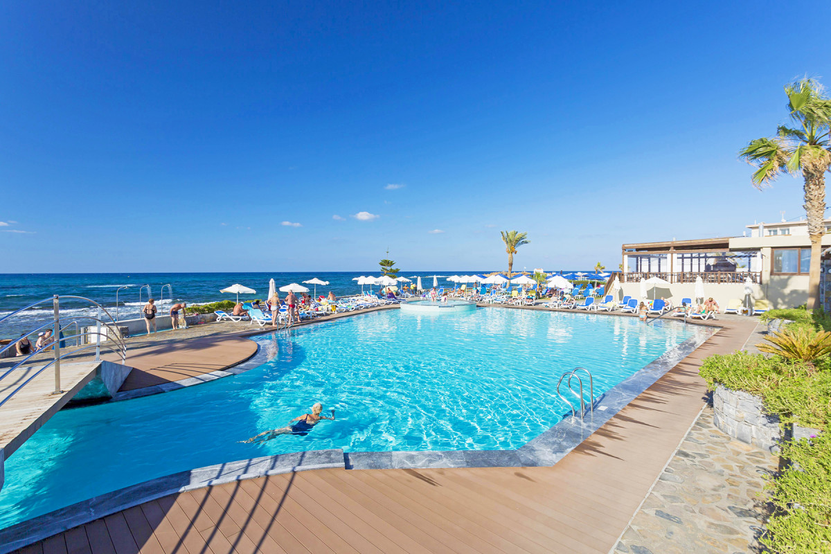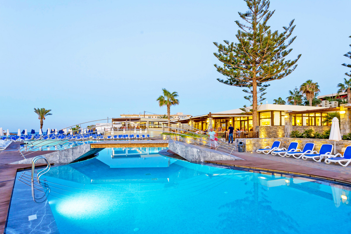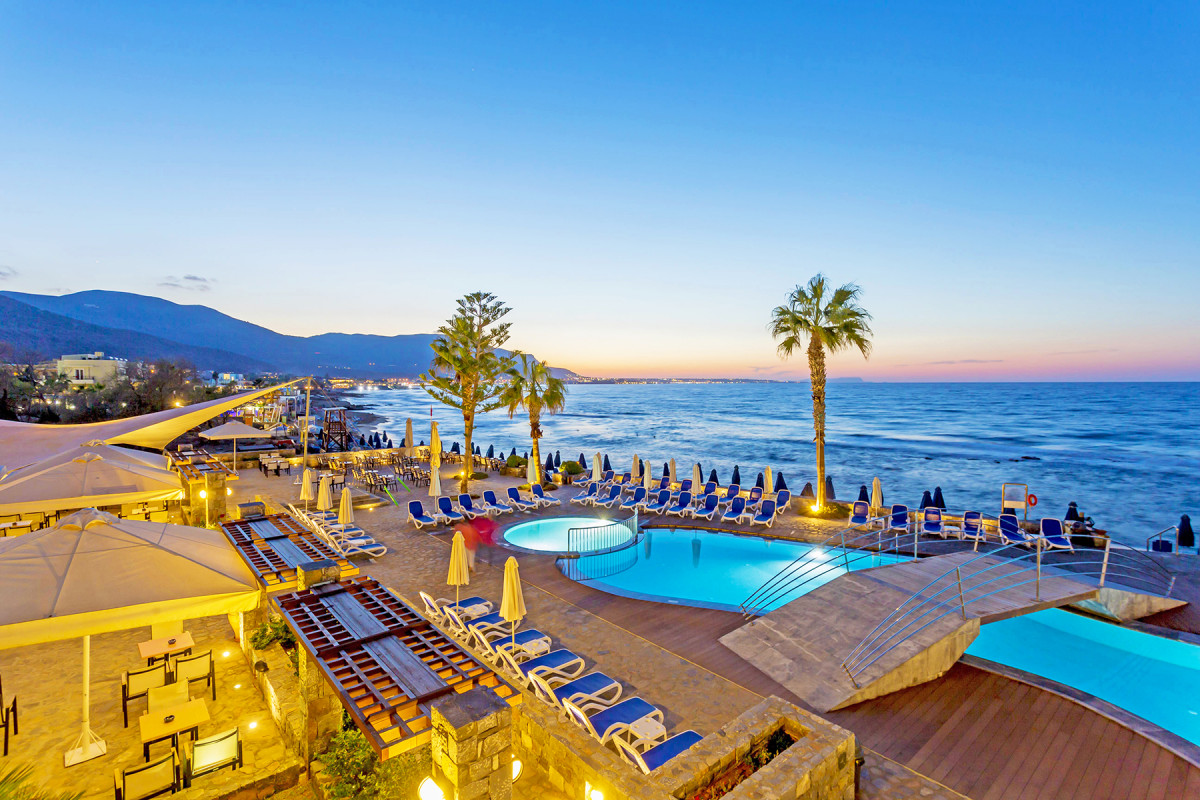 Удачное расположение, прямо на берегу, на самой оживленной улице с тавернами и магазинами Бассейн с морской водой прямо на пляже, можно лежать у моря и купаться в бассейне с теплой водой. Отличное питание как для взрослых, так и для детей. Хорошая организация питания, в любое время можно что-нибудь перекусить. Красивая территория с множеством цветов, пальм, газонов. Несколько бассейнов. Бесплатные спортивные развлечения: мини-гольф, большой и настольный теннис и др. Много лежаков, всегда есть свободные места. Хорошая детская анимация, детей из миниклуба не вытащить.