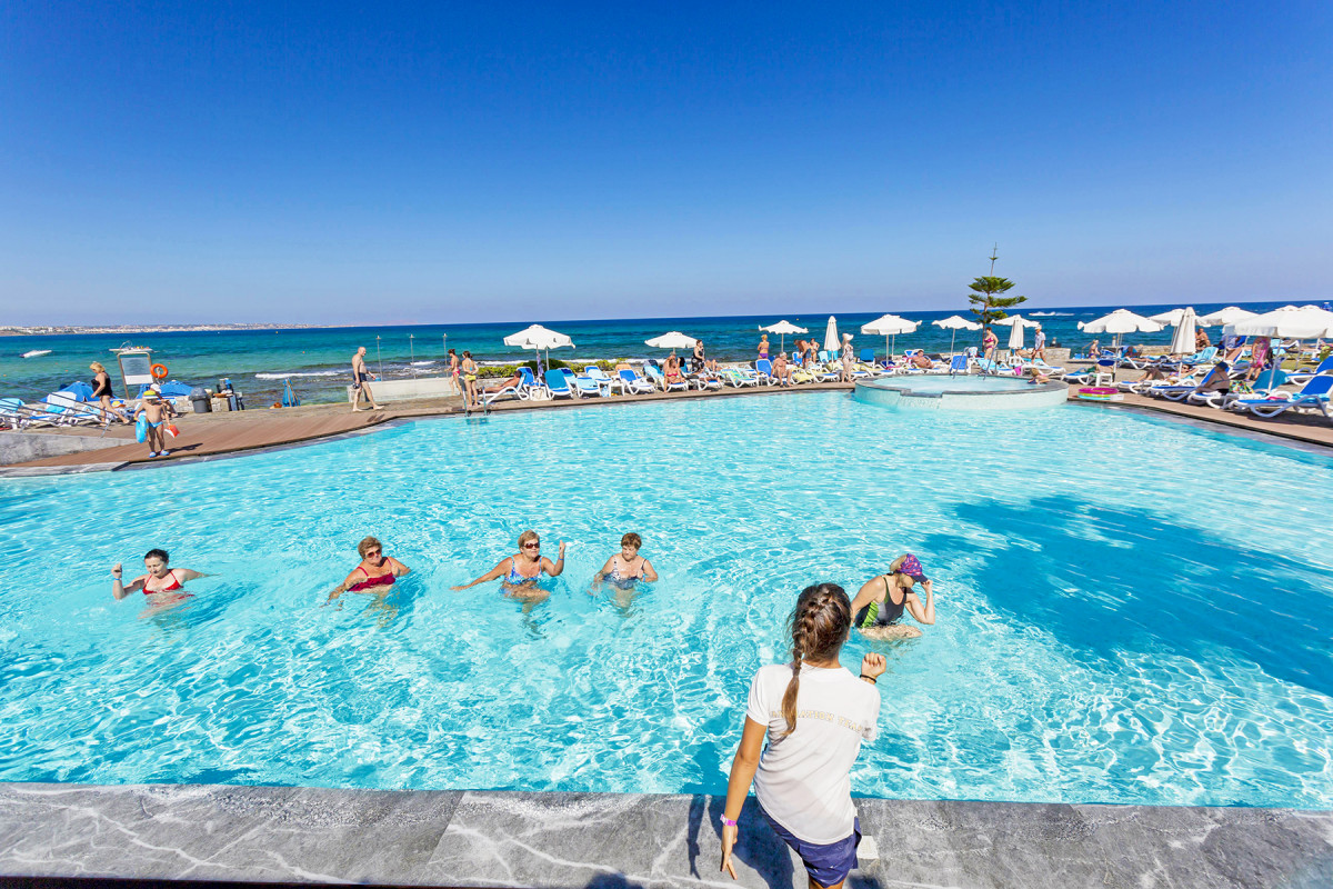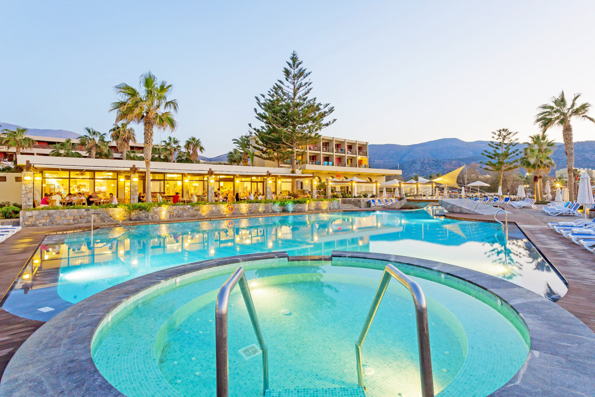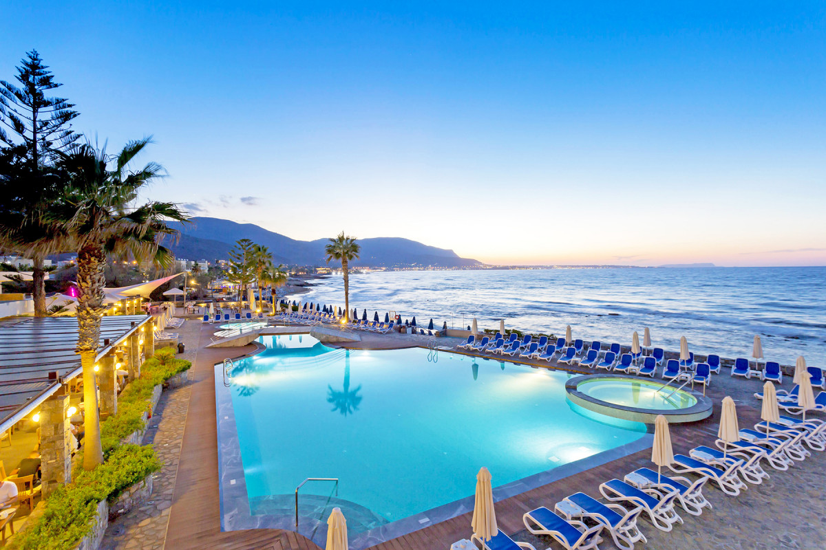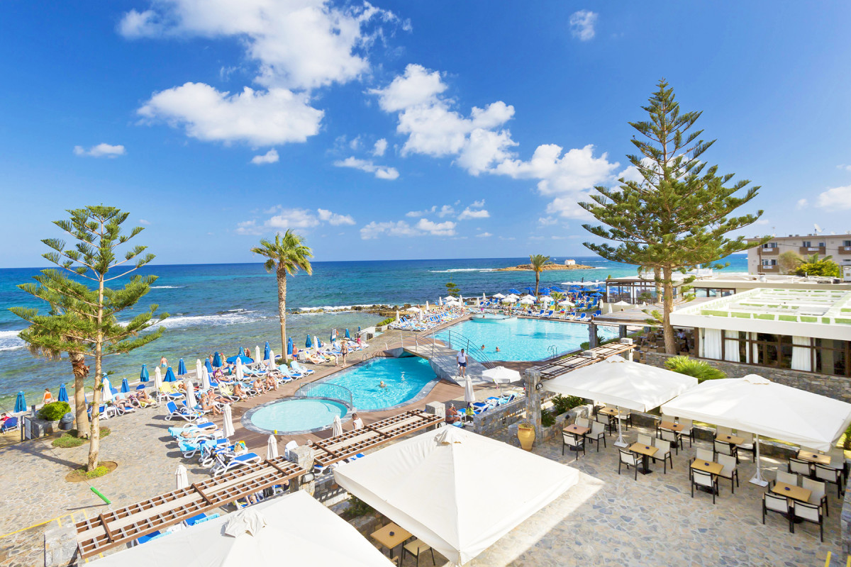 Удачное расположение, прямо на берегу, на самой оживленной улице с тавернами и магазинами Бассейн с морской водой прямо на пляже, можно лежать у моря и купаться в бассейне с теплой водой. Отличное питание как для взрослых, так и для детей. Хорошая организация питания, в любое время можно что-нибудь перекусить. Красивая территория с множеством цветов, пальм, газонов. Несколько бассейнов. Бесплатные спортивные развлечения: мини-гольф, большой и настольный теннис и др. Много лежаков, всегда есть свободные места. Хорошая детская анимация, детей из миниклуба не вытащить.