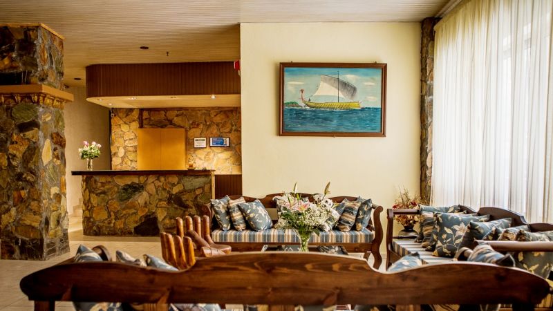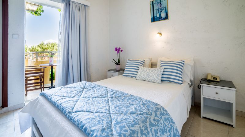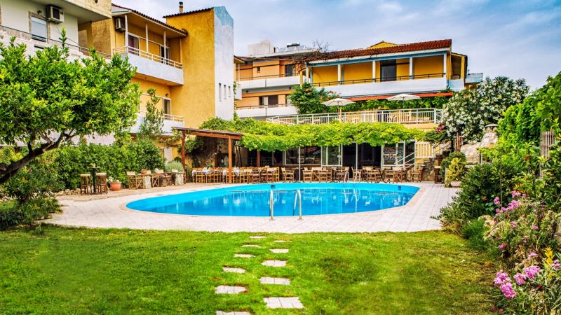 В поселке Аммудара, в 5 км от г. Ираклион, на центральной дороге, в 150 м от пляжа. Автобусная остановка напротив отеля.