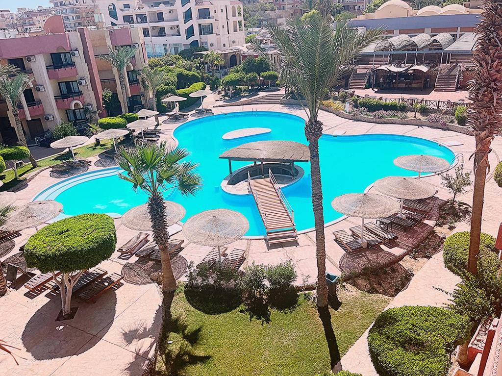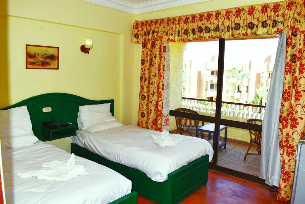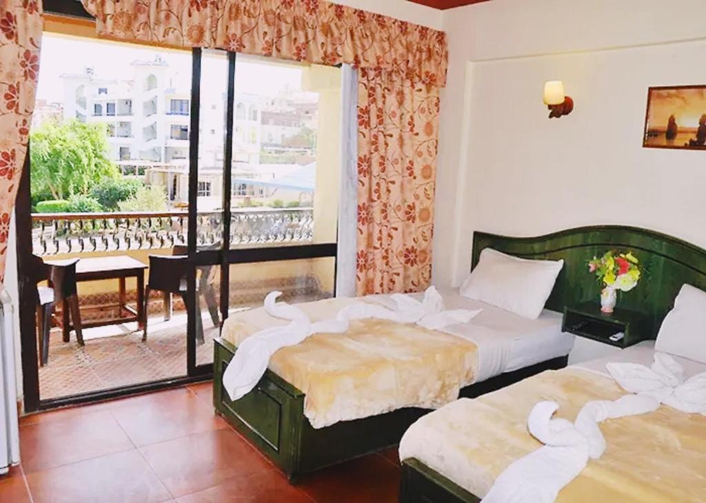 Хороший отель, в старой части Хургады. Отель только начинает принимать туристов так как проходит реновация. Отель очень уютный и зелёный. Анимации нет. Русских почти нет. Семей с арабами нету, те что заезжают они без детей очень приличные. Номера стандартные для 3 звезд. Питания вкусно но без большого выбора, но голодным не будешь. Пляж имеет два захода, один к кораллам (не Шарм-Эль-Шейх конечно ну если плавать в разные стороны очень не плохой риф) спуск с лестницы с лева, другой вход центральный песчаный пологий. За не большие деньги отличный отель.