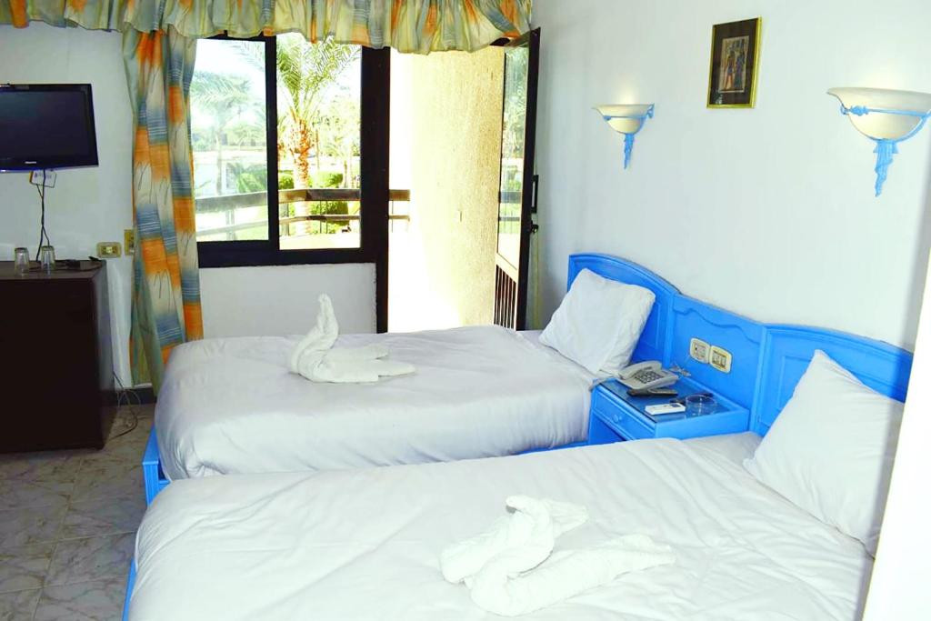 Отель для 3* просто отличный!Первая линия, красивая, зелёная территория, пальмы, цветы. Бассейн. Приехали в 6 утра местного времени, сразу заселили в номер, через час на завтрак пригласили. Питание супер, всего хватало: мясо, курица, рыба, разнообразие салатов, десерты, фрукты, голодными не были! Вай фай в зоне ресепшн и прилегающей к зоне территории. Была анимация. Есть одно НО! Номерной фонд у отеля старый, но полностью соответствует фото. Мы не обращали на это внимание, так как главное ехали за морем и хорошим настроением. Уборка в номере и смена белья и полотенец: ежедневно. Воду в номер приносили каждый день. Но можно было и брать в баре. Бар с напитками. Пиво нормальное. Алкоголь не брали. По поводу вымогательства денег - его вообще не было! В номере только ночевали и переодевались. Отдых удался, отель понравился, при случае - вернулись бы снова! Экскурсии брали у гида, (дороже, не намного, но постоянная связь с гидом, напоминания о выезде!) Ездили в Каир на пирамиды и остров Orange bey. Люксор в гробницы. Кто не притязателен к номерному фонду- отель рекомендую! Персонал впринципе неплохо понимает по русски, проблем не возникала, доброжелательные, отзывчивые люди. В остальном - всё супер! Хороший недорогой отель. Отдыхом остались очень довольны!