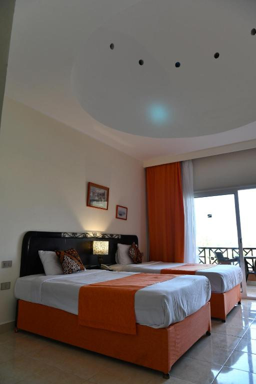 оставил неоднозначные впечатления. Начну с плюсов: 1. Территория, одна из самых зеленых, на которых мы были, за садом действительно ухаживают и делают это с любовью. Из-за хорошего сада прилетает очень много птичек. Виды будут действительно красивыми и фото можно сделать очень много. 2. Хорошее состояние пантона, спуск и освещение, есть возможность спуститься в лагуну, если вы не хотите плавать слишком глубоко, но заранее предупреждаю, лагуна тоже не мелкая. Также впервые встретилась с возможностью ночной прогулки по пантону, в конце устанавливают фонари, и вы можете разглядеть приплывающих обитателей, это сделано из-за ночных подводных погружений для желающих. 3. Многообразие подводного мира, тут мы увидели и двухметровую мурену, и кальмара, и черепах, и осьминога, и много скатов, и конечно же огромное количество рыбок, а по берегу по вечерам бродят полчища крабов и раков отшельников. 4. Любителям уборки, вам сюда, вас будут буквально упрашивать убраться в вашем номере, и постоянно спрашивать, чисто ли убираю и все ли вас устраивает. Далее пойдут минусы. 1. Море, я готова была простить все неудобства этому отелю, т.к. почти каждый второй отзыв в интернете говорит о "неубитом туризмом море" и живом рифе, поэтому мы как минимум ожидали увидеть риф на уровне Шарма, а то и лучше. По итогу, люди не совсем понимают, что живой риф — это не многообразие рыбок, а именно живые кораллы, кораллы по итогу мертвые, действительно живых участков очень мало, поэтому я бы не советовала ехать так далеко если состояние рифов даже хуже оживленных отелей Шарм-эль-шейх. 2. Отель старый, кондиционеры работают довольно плохо, за наш недельный отдых кондиционер в номере уходил в ошибку 2 раза, правда на ресепшене быстро решили проблему, но она имеет место быть, в столовой из 4 кондиционеров работает только 2 и то не в полную мощность. По итогу если вы едите летом, на улице находится в принципе тяжело, т.к. хоть там и расставлены вентиляторы, но не особо спасают, а внутри в столовой кондиционеры не охлаждают от слова совсем, холод от холодильников идет больше, чем от самих кондиционеров, что было существенной проблемой при 38 градусах летом, осенью возможно такой проблемы больше и не будет. 3. Еда - твердая тройка, да есть из чего выбрать, но я была в Египетских 4*, это не она, здесь выбор действительно невелик, да голодным вы не останетесь, но притязательным в еде лучше сюда не ехать, до 2023 года отель был тройкой, но потом в 2023 была переоценка звездного статуса и он стал четверкой, предполагаю, что из-за территории, потому что ну никак не тянет он на полноценные 4 звезды. 4. Бассейн не то, чтобы грязный, но мусор со дна убирают наплевательски, поэтому будьте готовы к листикам и прочей грязи, разбросанной по дну. Стоит принять к сведению: 1.Я знала что трансфер будет 5 часов, он будет или индивидуальным или помимо вас будут 3-5 людей, советую много воды не пить, потому что организация похода в туалет по пути будет никакая, мы ехали впятером я, муж, 2 девушки и водитель, когда девушки захотели в туалет водитель не мог в течении получаса найти вариант, мы заехали в глухой арабский район, где арабы отказывали в туалете и вели себя не очень любезно, отсюда у меня сразу возник вопрос, почему при путешествии в 8 часов по пустыне до пирамид Гизы дают сопровождение и охрану, а при 5 часах тебе дают 1 максиму