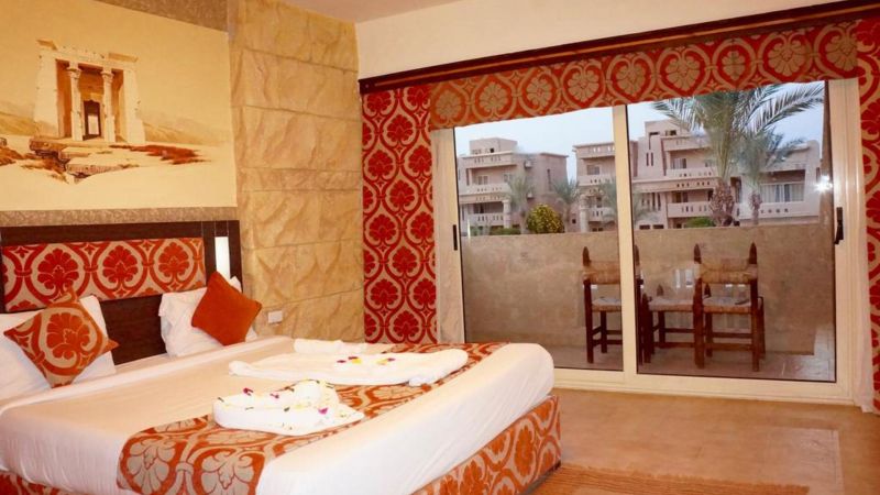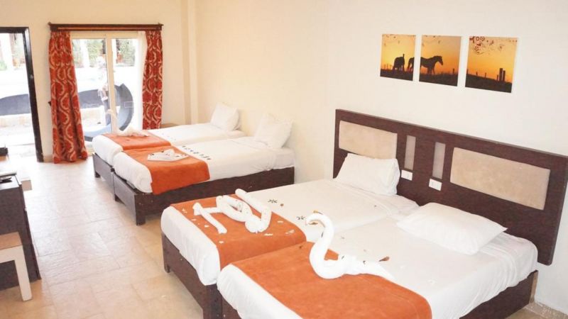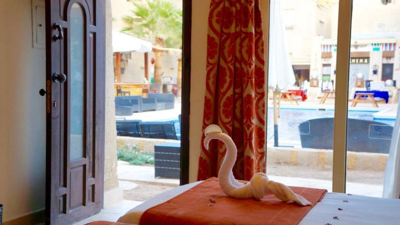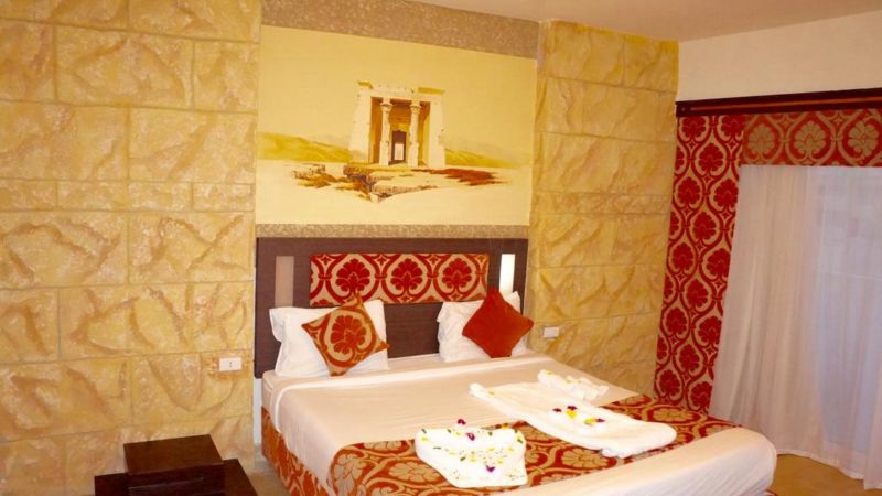 Красивые только на фотках, номера с балконами, обгаженными голубями, на который даже выйти противно, не то что посушить белье или просто посидеть отдохнуть; Еда очень своеобразная, сын 9 лет это есть не мог; Аннимация однообразная, скучная, рассчитана на дошколят. развлечения для взрослых отдыхающих не предусмотрены, хотя в цокольном этаже есть ночной клуб, который почему то не работает; за территорией отеля одни магазинчики, рынки, продавцы пристают очень навязчиво, если не обращаешь внимание - обижаются, из национальных достопримечательностей Египта посмотреть нечего, что бы увидеть настоящий Египет нужно ехать минут сорок в Старый город; Своего пляжа нет, пляж арендованный, до него можно и пешком дойти, и доехать на специальном микроавтобусе бесплатно; В море купаться не реально, глубина чуть выше щиколотки на протяжении 100 м, дно - кораллы, поэтому нужна специальная обувь; Отдыхающие отелей 1 линии купаются с понтонов, которые как раз метров на 100 уходят в море, но нас арендаторов на понтон почему то не пускали, мотивируя тем, что именно мы кормим рыб, бросая хлеб с понтона, что запрещено.