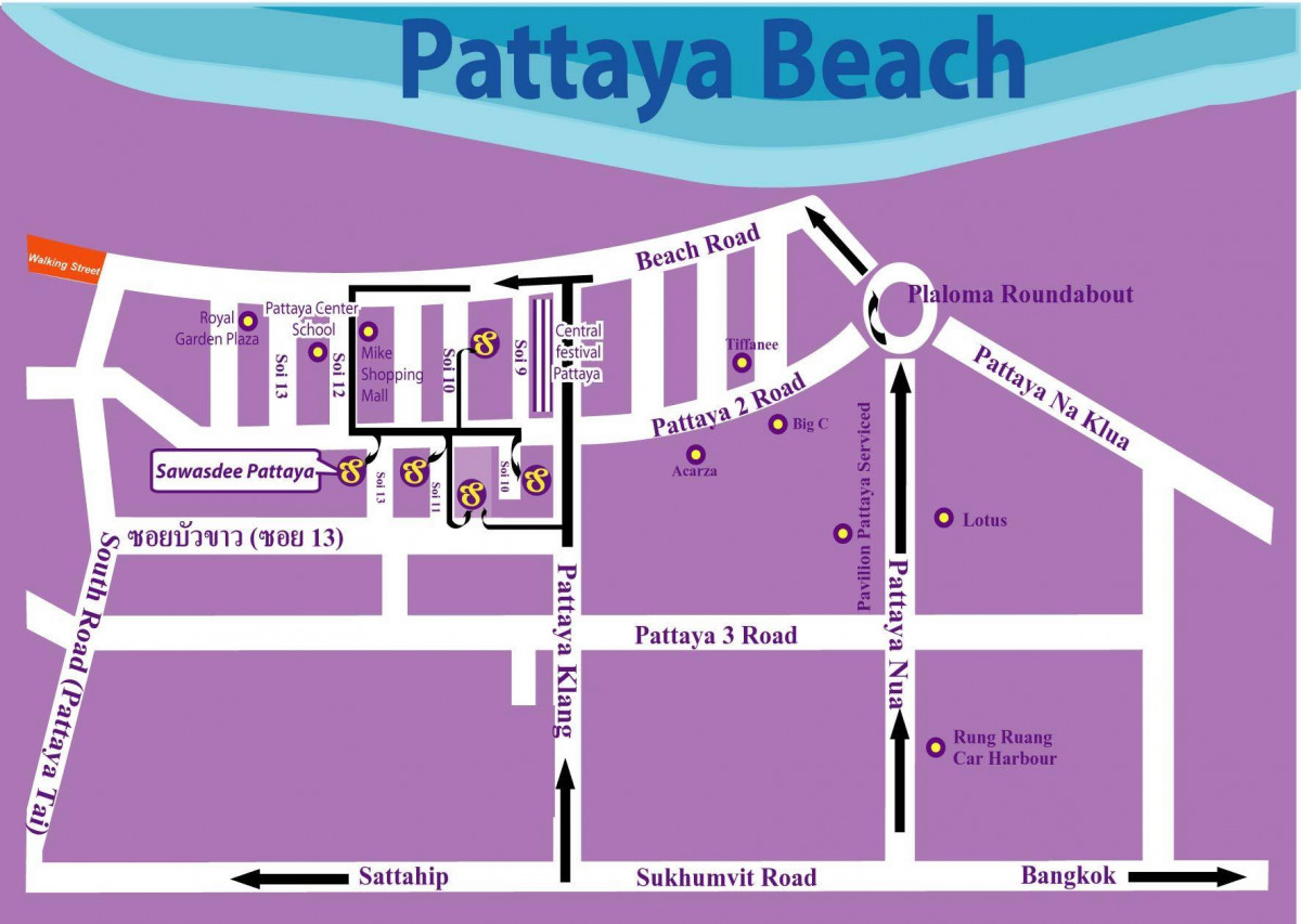 Расположен в центре города Паттайя, в 650 м от моря (8 минут ходьбы), недалеко от крупного торгово-развлекательного центра Central Festival (800 м, 9 мин. ходьбы), в 1,4 км от центра ночных развлечений Паттайи — Walking Street (16 минут ходьбы), в 123 км от аэропорта Бангкока Suvarnabhumi (1 час 30 минут), в 43 км от аэропорта U-Tapao (45 минут езды).