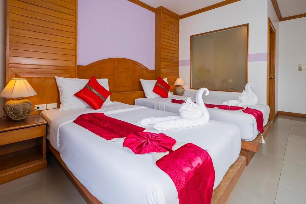 Расположение отеля отличное, все в шаговой доступности (рынок, пляж, кафе, бангла роуд). Завтраки, конечно, однообразные, но этого достаточно сбить ночной голод. Номера очень достойные для отеля такого уровня: мебель хорошая, пастельное белье старенькое, но чистое, кондиционер работал исправно, сейф в номере, чайный набор и вода обновлялись каждый день, уборка ежедневная. Вечером можно посидеть на бассейне. Вернулась бы в этот отель