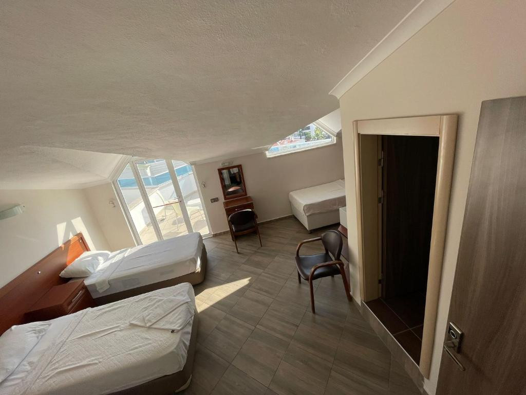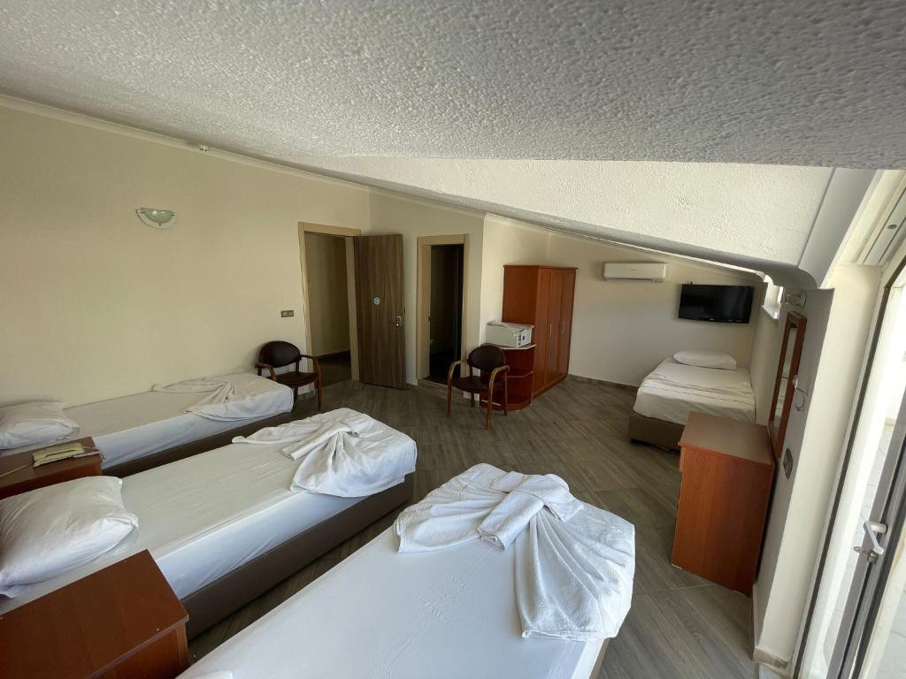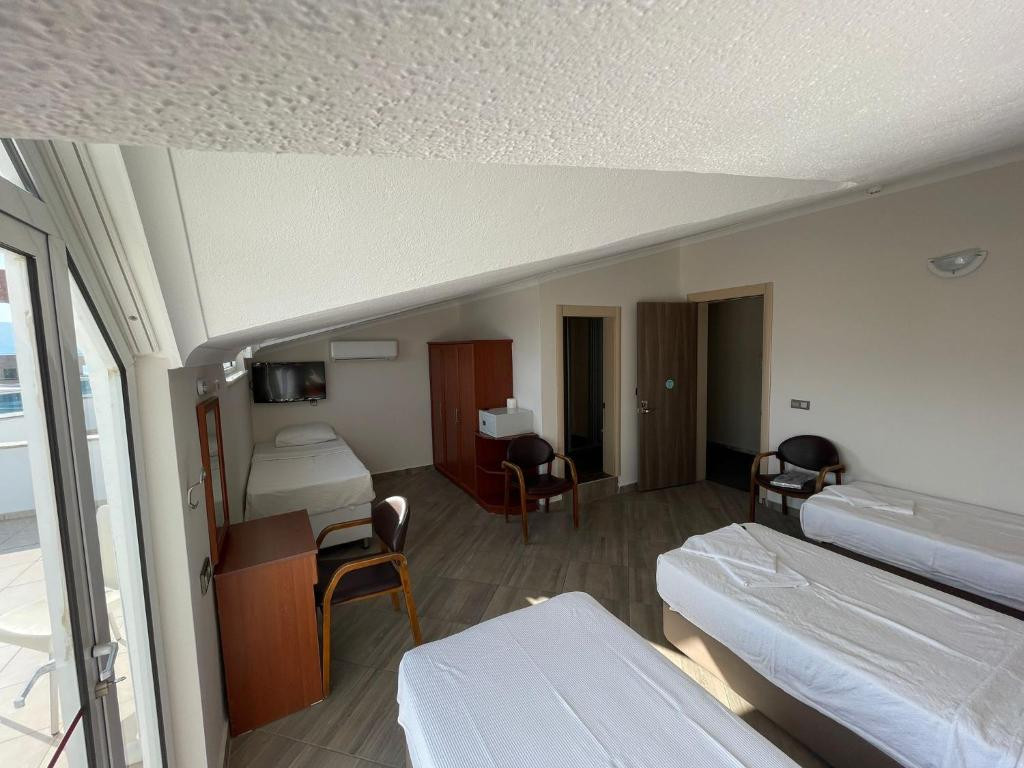 Отель понравился, соответствует заявленным звездам. Приехали около 22 часов, но нас проводили в столовую и покормили, было неожиданно и приятно, на ресепшене доброжелательные женщины, все русскоговорящие. Номер нам достался на 1 этаже, но фактически это 2 этаж, есть лифт, номер с балконом, уютный, все необходимое есть. Питание неплохое, разнообразия конечно не ждите, но нам хватало, есть кофемашина, на обед мороженое из аппарата, из фруктов был только арбуз. На бассейне бар, есть шампанское, вино, пиво Эфес разливное, виски. Напитки неплохого качества, девушки барменши весёлые, на позитиве, в баре всегда сидит сын хозяина отеля, короче следит за баром, а сам хозяин постоянно в отеле, короче вся семья при деле. По контингенту: процентов 95 русские, с нами было несколько англичан, все было спокойно, по возрасту в основном среднего, 30-50 лет, детей и пенсов не было, вечером тихо и спокойно, пьяных в отеле не видел. До море минут 5, через пешеходный переход, как выходите на пляж, то чуть правее муниципальный пляж, мы ходили чуть дальше к отелю Осмарис, брали напитки, чипсы, и за это лежаки на весь день, бармен у них Миша, он из Баку. Экскурсию брали у Валентины, справа перед пешеходником, увидите, женщина с интереснаой судьбой, сама из Астрахани, больше 20 лет живёт в Турции, вышла замуж. Смело можете к ней обращаться, валюту на лиры тоже у неё меняли. В целом отдыхом остались довольны, отель рекомендую для непритязательных туристов!