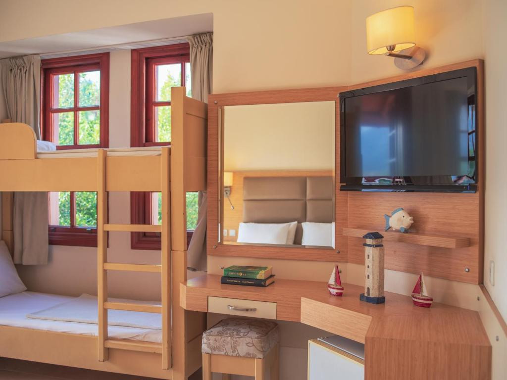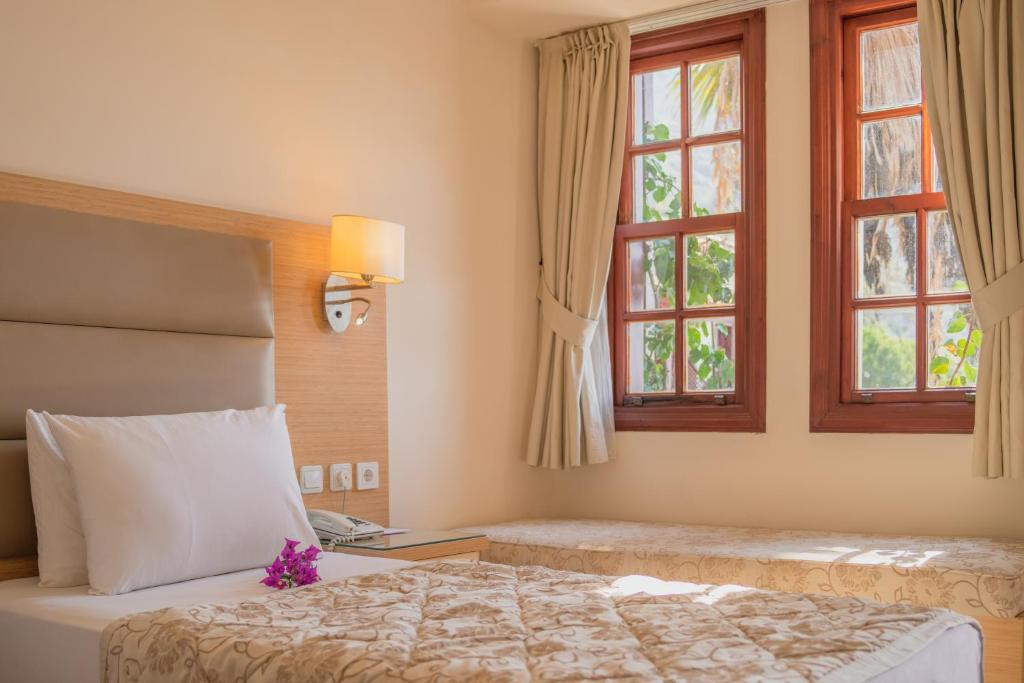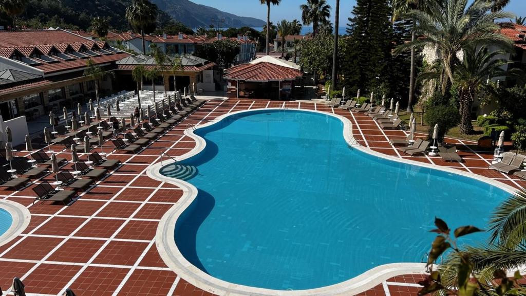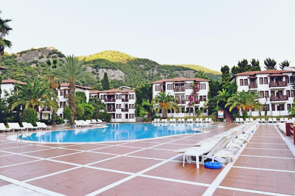 Отель вполне соответствует своим звёздам. Спокойное место, чистая зелёная территория. Хороший бассейн. Лежаков достаточно. Питание хорошее. Каждый вечер готовят что-нибудь на гриле. Очень вкусная запечённая картошка ( типа "крошки-картошки"). На перекус вкусные гамбургеры. Никаких очередей. Уборка ежедневная. В номерах чисто. Кондиционер работает исправно. В номере находится комфортно. А вот до моря нужно идти минут 10. Лежаки только за деньги, и уже это стоит 600 лир.