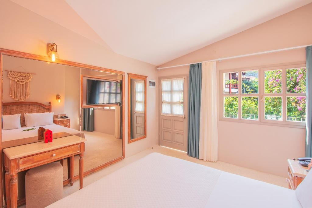 Отель понравился, нас поселили в отдельном домике на две семьи, комната с большим балконом, уборка каждый день, вкусная еда, расположение около центральной улицы, но тихо. Пляж от отеля в заливе, мелкий песочек, шезлонги, но напитки за допплату и полотенце должно быть свое, мы один раз съездили и больше там не были, туда хорошо с маленькими детками, а мы ходили на городской пляж. Управляющий постоянно в отеле, все просьбы выполнялись, хороший вайфай был даже в номере.