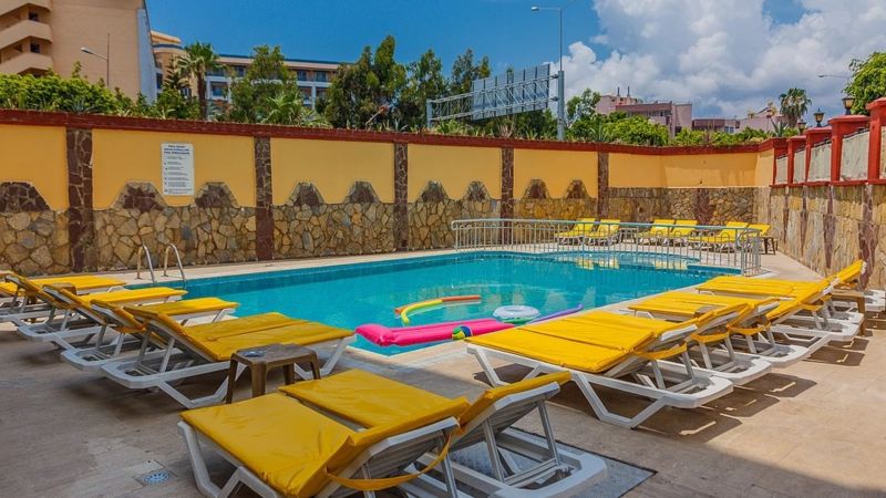 Хах ну всем привет. Отель тянет на хорошую тройку, это не 5* не ожидайте от него большего. Расположение очень хорошее на 1 автобусе можно доехать до центра, на 2б до аланиума, рядом есть 2 мигроса, carefur, рынок (понедельник, четверг). Еда не очень. На обед и ужин дают разнообразные супы, гарнир (обычно рис, перловка) фасоль, иногда дают нагетсы, рыбу, котлетки (НЕ КАЖДЫЙ ДЕНЬ) про завтрак можно молчать. Обычно пили кофе и ели хлопья. Если не придёте ровно к началу (завтрака, обеда, ужина) то может ничего не достаться, есть арбуз, апельсины, десерты только на ужин (фигня), брали в мигросе чизкейк за 88 лир. Бар работает с 11-22 маленький выбор. Про пляж, шезлонги полное г.. и заход в море с плитами, лично мы оставляли вещи на лежаках отеля Relax и шли на пляж отеля Grand Kaptan (там очень хороший заход в море). Номера стандартные, холодильник не работает, жили сначала на 2 этаже, потом на 5, что там, что там есть минусы. На 2 этаже вид был на стройку и кафе, выходишь на балкон на тебя все смотрят. На 5 этаже был вид на море, но очень сильный шум от машин. Попросили поменять номер, сказали 30 $, позвонили тур оператору, всё решил бесплатно. В целом отель не плохой на хорошую 3 (поставил 4 звезды, чтоб не портить рейтинг из-за негативных людишек)