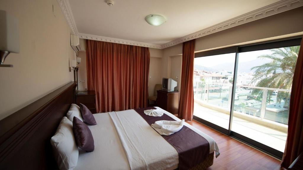 Отдыхала в данном отеле с 29 августа по 12 сентября 2023г. Отель полностью соответствует заявленным 3* звездам. Номер небольшой, но я же отдыхать приехала, а не дом покупать, чтобы высчитывать квадратные метры. В номере все необходимое было, все в рабочем состоянии. Единственное попросила заменить лампочку в светильнике, без лишних комментариев мою просьбу выполнили в течении часа. Номер убирали каждый день. Персонал молодой, улыбчивый. Не все общаются на русском, но на английском все. Отдельное спасибо парням (имен не знаю) с рецепшен за доброжелательность. Гости отеля общительные, не важно с какой ты страны и на каком языке говоришь. Еда отличная. Булгур, мне кажется его только в Турции так готовят. Помидоры, сыр, зелень, а ОЛИВКИ, за них же можно душу продать. Кофе вкусный, чай превосходный. Из спиртного пила вино…прекрасное. Море. «О чем ты будешь рассказывать на небесах, если не видел моря». И это море Мармариса , тем более оно в шаговой доступности от отеля. Я летела ради моря, солнца и пляжа 10 часов, не считая времени на пересадку. У каждого припляжного бара, есть свой кусочек пляжа с шезлонгами. Я покупала бутылку воду и наслаждалась морем и солнцем с утра до вечера. Коты везде. Это смешно, конечно они везде, это же Турция!!! Они их боготворят и вы знали куда едите при выборе страны. У меня на пляже появился Best friend Феликс. полосатая морда кг восемь, которая встречала и провожала меня с пляжа и еще он показал мне маркет, где покупать ему корм. Судя по весу я не первая и не последняя, кто попался на эту удочку. Всем привет из Сибири.