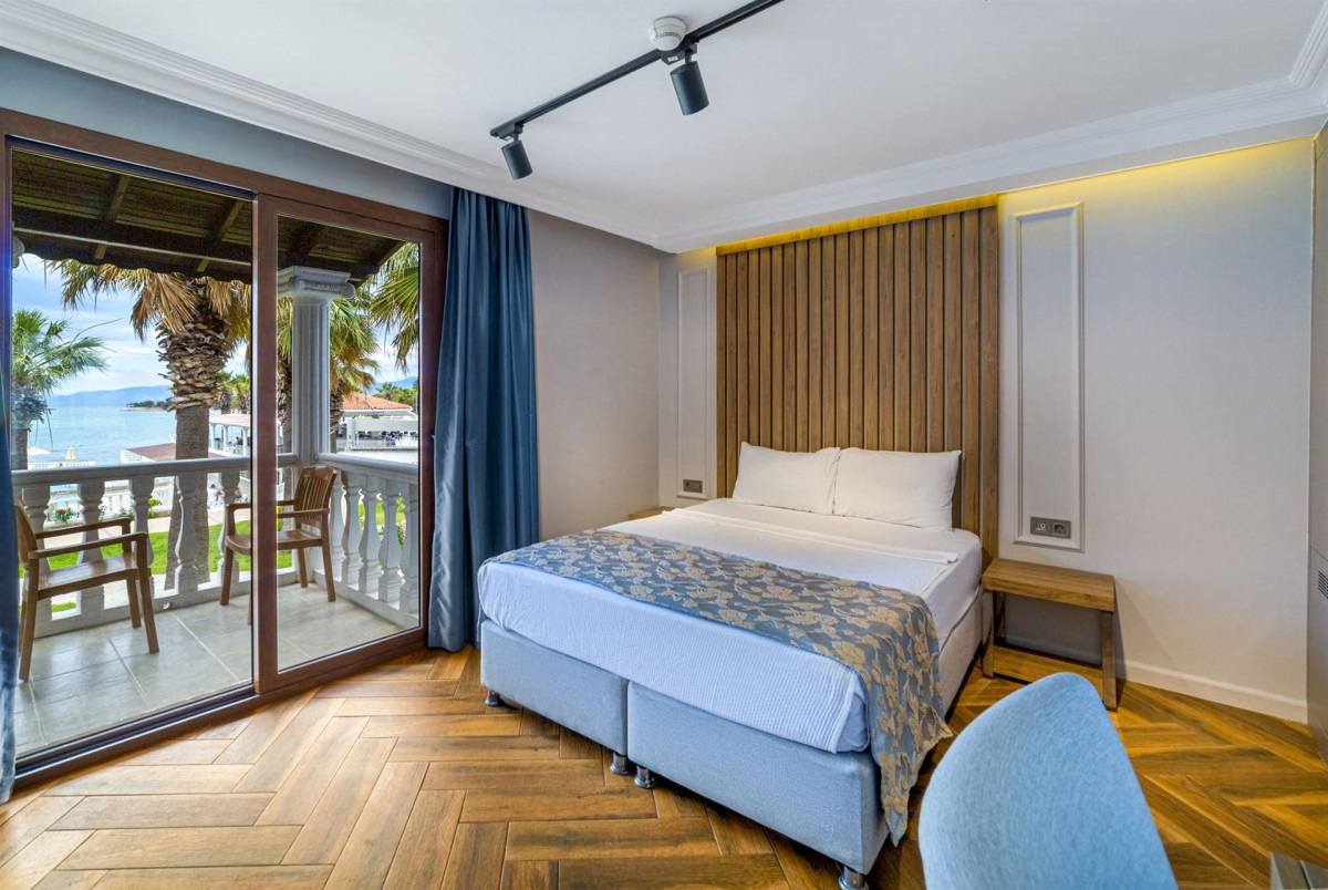 В 82 км от аэропорта Миласа Бодрума, в 140 км от аэропорта Измира, в 6 км от центра г. Дидим, на берегу моря.