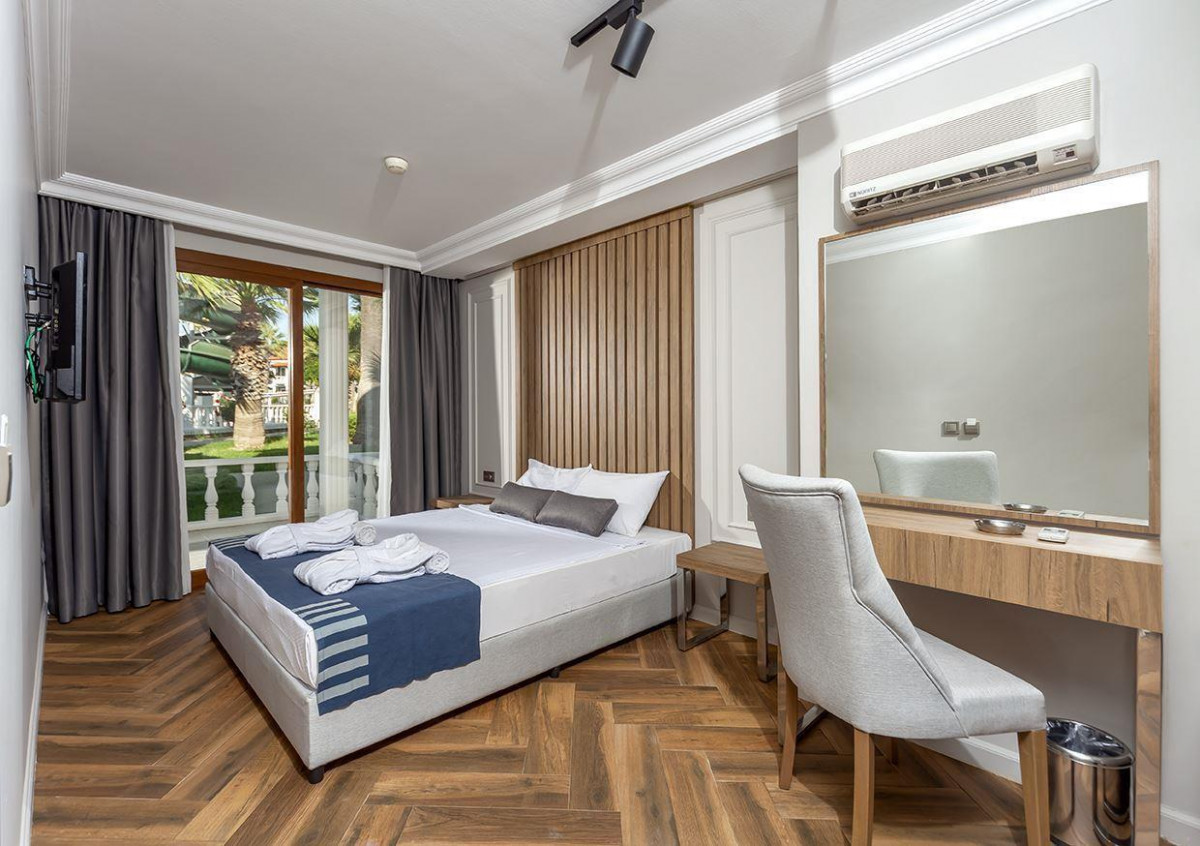 Сейчас нахожусь в этом отеле. Только положительные эмоции. Хорошие номера, отличное питание, бар на ресепшн круглосуточно наливает алкоголь. Бар рядом в пляжем, бар рядом с бассейном. Коктейли, крепкие напитки и вино из бутылок. Море шикарное. Пляж песок, шезлонгов хватает, вода прозрачная, дно в море идеально-чистое, иногда появляются водоросли, но вообще не критично, думаю чистят. ТВ 3 русских канала. Вай фай в номерах и на пляже. Рекомендую для отдыха с маленькими детьми, так как очень удобный заход в море. Может для кого-то минус, что долго идти по мелководью. Но имейте ввиду, что это Эгейское море и в октябре оно уже не тёплое