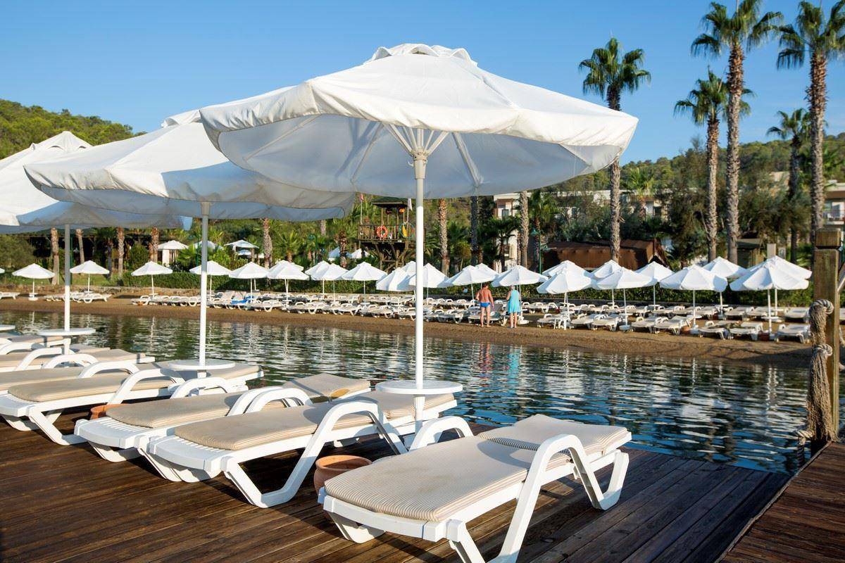 Начиталась как обычно отзывов) зачем то купила аква обувь. Из впечатлений. Заезд был в 10 утра заселили через пол часа, спасибо. Море за которым едем прохладное, лучше б анталия. Природа на любителя. Пейзаж как будто я приехала на озеро Байкал. Ощущения моря как и волны нет совсем. Рыб много. В воде лучше не стоять щипают за ноги) не больно, но неожиданно. Плывите! Персонал очень старается. Русскоговорящего нет ни одного! Будите ходить с переводчиком. Ездили в город парень носитель чемоданов предложил поменять нам 100 долларов, говорит не берут в автобусе ничего кроме лир. Сказала ок давай 20 поменяем начал психовать говорить только 100. Итог везде берут доллары и он обманул нас по курсу) ну пусть ему останется на таблетки . В номере нет зубных принадлежностей, мочалки, халатов. Вроде 5 звезд. Все предложат в местном ларьке за 10 баксов берите с собой! Шампуня нет. Висит 1 диспенсер с гелем для душа. Номера убирают ежедневно не айс конечно. За кроватью клубами пыль на телевизоре слой) но если туда не заглядывать норм. Нет утюга! Клянусь я первый раз с таким сталкиваюсь в пятерке. Только прачка с глажкой (проспет прилагаю) за такие деньги можно купить новую вещь. Спасибо из 5 платьев носила 2 более менее не мятые) полотенца меняют каждый день, бар пополняют. Отдельная история это кошки на территории. Их немеряно! Возможно тут это тотемное животное. Их не гоняют, но и не лечат. Сердобольные туристы их кормят. В итоге они везде. На стульях в ресторане спят, залазят на столы, детские коляски, пока вы купаетесь он будет встречать вас на шезлонге на вашем полотенце. 1 раз вечером зашел через балкон и лег со мной на кровать . Коты в столовой метят стулья прям при вас. Все больные. Глаза почти у всех гноятся. Если. У вас аллергия берите таблетки и что то от лишая. И осадочек, что номер не продлили выезд у нас в 21 час. Ходили как неприкаянные по территории до вечера. Питание отличное как и везде у турков. Кормить вас будут и поить с утра до ночи. Но отдельное спасибо мангальщику!!! Всегда все на 10 с плюсом, в итоге с пятого дня я сидела на гриле он сказочный. Вообщем если вы не из царской семьи довольно сносно. Не могу сказать что цена качество соответствует. Это точно не пятерка! С 1 октября цена упала на 40% а по сути лето тут продолжается. Погода прекрасная. Вернусь? Однозначно нет!