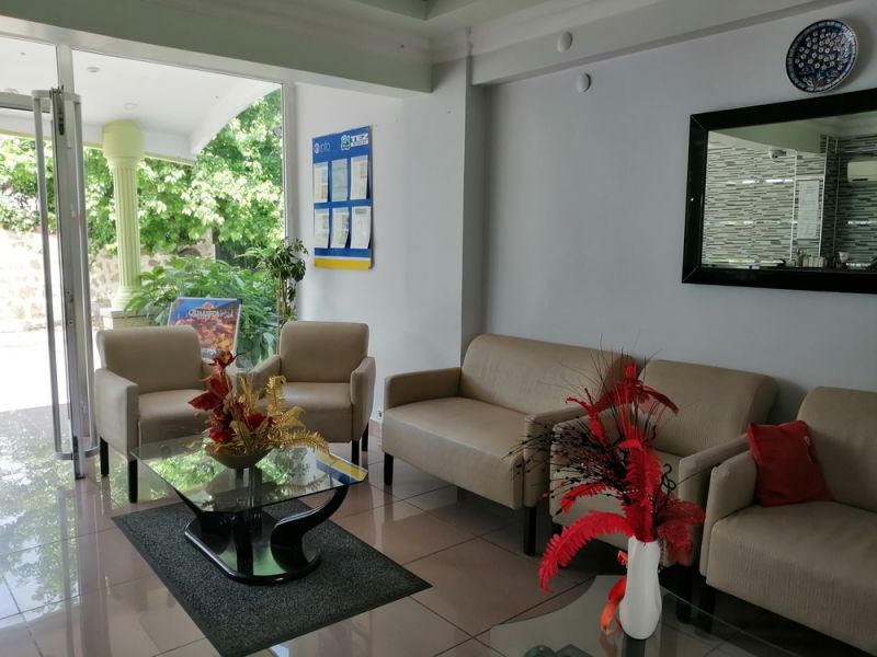 Отдыхали в октябре 2024 года. Да, отель очень простенький, не новый, НО очень приятный и уютный, еда хорошая, вино в баре хорошее. Отличное соотношение цены и качества. Бассейн чистый, приятный, посуда в ресторане чистая. Персонал очень доброжелательный. Главное с каким настроем приезжаешь. Если хотите шикарный номер и много еды, то выбирайте отель дороже и классом выше. Надо отдавать отчет и понимать, что отель очень простой. Из плюсов - не так далеко от моря и вокруг маленькие уютные улочки, рядом ботанический очень красивый парк. Все в шаговой доступности. Можно поехать на автобусе на пляж, можно пешком на городской. В 5 минутах главная пешеходная улица со всеми магазинами. Ощущение от отеля, как будто приехали в гости. Нет казенности. Потертые двери деревянные, даже дают шарма отелю.