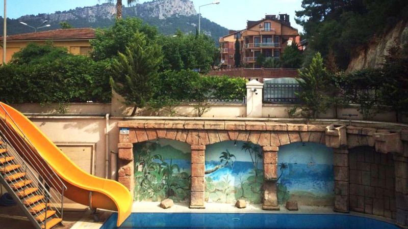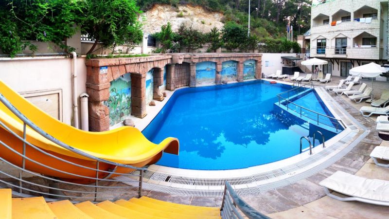 Читали отзывы перед тем, как поехать сюда. Отзывы 80% плохие, отель вроде и 4 звезды, но это не так. Привлекла цена (в других отелях тоже четверках мы могли бы купить на это деньги только шесть-семь дней, тут получилось 12), да и ехали к морю. На ресепшн встретил молодой человек Миша, приехали мы с ребенком и оказалось, что номера с детской кроватью всё заняты, в итоге два дня мы жили в двухместном номере который выходил на ресторан (очень шумно, балкон не открыть), но сам номер чистый, всё работало. Через два дня переселили на третий этаж с видом на горы и бассейн. Номер больше, с детской кроватью (но это просто два матраса, которые положили друг на друга). Кондиционер гудел так, что с ним в комнате было не комфортно находиться более 15 минут. Сам отель уставший. Хамам не работает, ссылаясь на то, что плохая проводка в отеле и если включают внизу свет, то в другой части он вырубается. Бассейн каждый день проходит обработку, в него заливают обеззараживатель (а значит в бассейн после 19:00 нельзя), горка есть, но она не работает. Уборка номера была два раза за 10 дней, но мы не пачкали особо, один раз поменяли детскую постель. По расписанию 5 раз к отелю подъезжала маршрутка к пляжу Айышигы Паркы (там же рядом Фолклорик Йорюк Парк). От пляжа два раза в день(в 12:00, в 18:00) привозили на пляж с песком. Лежаки платные (просили 3-4$, но мы всегда торговались и брали либо за 4-5$ два). До пляжа ходили и пешком, в целом не сильно напрягало. На пляже всегда было место. На пляж, что в центре, не ходили, т. к. там крупная галька и места очень мало. Питание: мы не привереды в еде, но на 4 день обедали и ужинали в других местах. Очень скудное питание, это не самое страшное, но очень не вкусно (закисшие помидоры с огурцами, суп отвратительный). Начиная от чая и заканчивая вялыми котлетами из сои (которые получить не так просто, нужно отстоять очередь). Куриные шеи уж в 4 звездах мы не ожидали совсем. На завтрак ни одной каши, омлета, яиц. Из всего съедобного более менее это макароны, перец жаренный, рис. Из фруктов за 12 дней был арбуз, яблоки политые чем-то кислым и слива. Выпечки кроме хлеба не было. Зато нашли недалеко от отеля Milk Bar (очень вкусно и бюджетно, огромные порции. Без спиртного, но есть кальян), можно брать на вынос. Также рядом два супермаркета CarrefourSA и ok. На мой взгляд, собственникам отеля нужно хотя бы отремонтировать то, что сломано, и сменить повара. А отдыхающим брать отель, понимая, что он ниже уровнем, чем есть.
